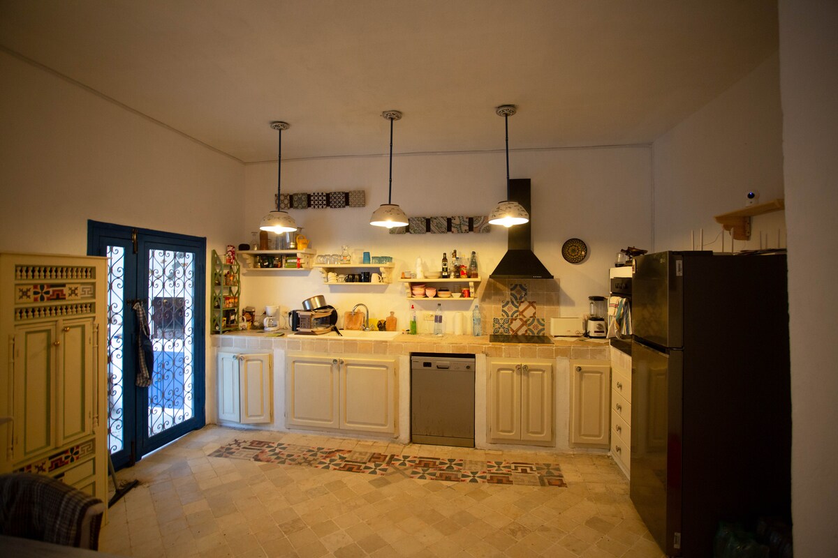 Uma casa tradicional tunisina de Djerba, bem conservada, com mais de dois séculos, restaurada para manter o seu carácter original. Esta casa pode acomodar oito pessoas. Os quartos são espaçosos, encantadores e acolhedores, com uma casa de banho em cada um. A beira da piscina é muito agradável de dia ou de noite, quando todas as luzes estão acesas.