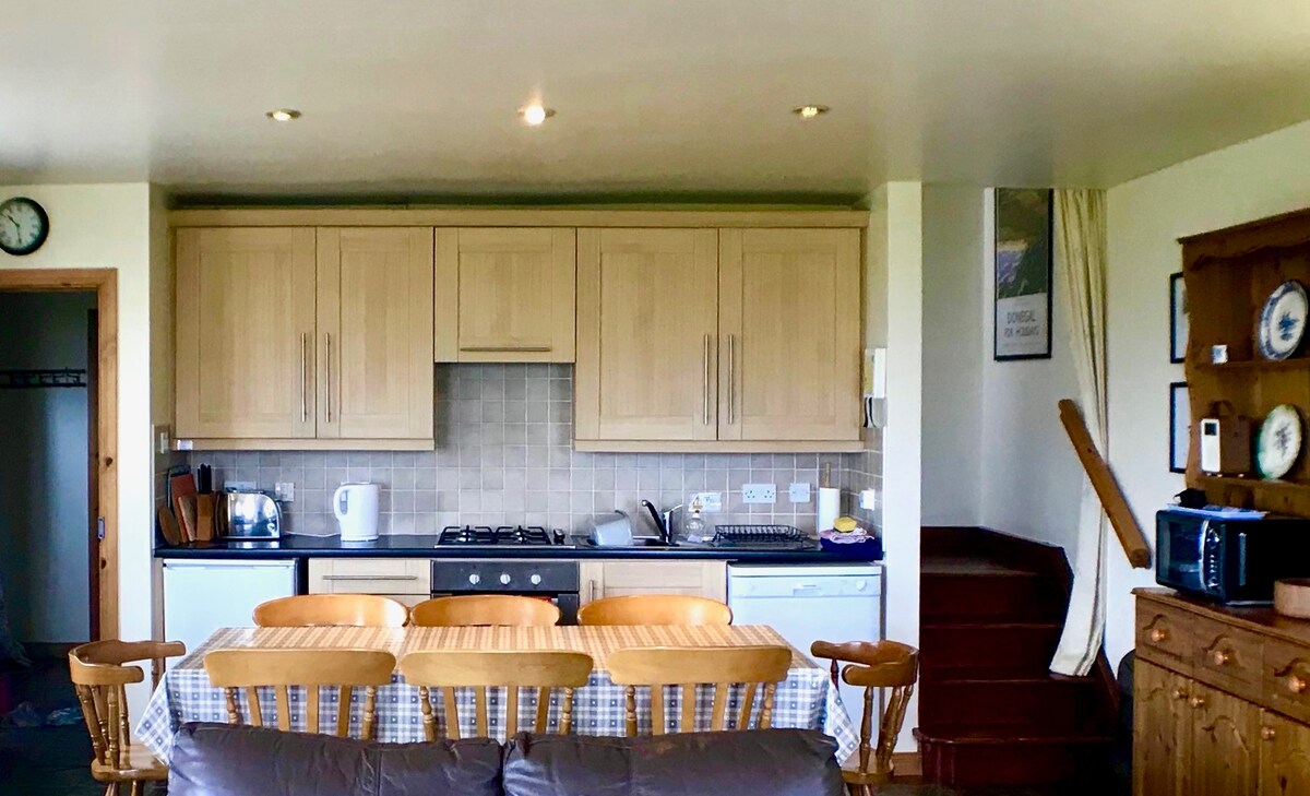 Relaxe em nossa autêntica cabana de madeira em plano aberto. Venha descansar, relaxar e descontrair no coração do Donegal Gaeltacht. Desfrute de vistas deslumbrantes para as montanhas Seven Sister enquanto relaxa na banheira de hidromassagem, Robes & Slippers fornecidos. A apenas 3 minutos de carro da praia de Magheroarty, onde você pode aproveitar passeios pela ilha e serviços de balsa para as ilhas locais. O Parque Nacional de Glenveagh, as montanhas Errigal e Muchish, o Parque Florestal de Ards e a destilaria Croilthlí estão a 30 minutos de carro.