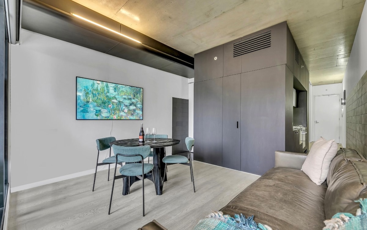 Esta unidade moderna e minimalista proporciona um ambiente calmo e espaçoso. As casas de banho são espaçosas e dispõem de chuveiros relaxantes, juntamente com champô e gel de banho de cortesia. Estamos a poucos minutos do centro de negócios de Melbourne, localizado mesmo ao lado do Marvel Stadium. Desfrute de fácil acesso a elétricos gratuitos à sua porta. Ginásio e piscina localizados no edifício ao lado, acessíveis com as chaves da sua casa, encontrará um ginásio totalmente equipado e uma piscina exterior aquecida para sua diversão.