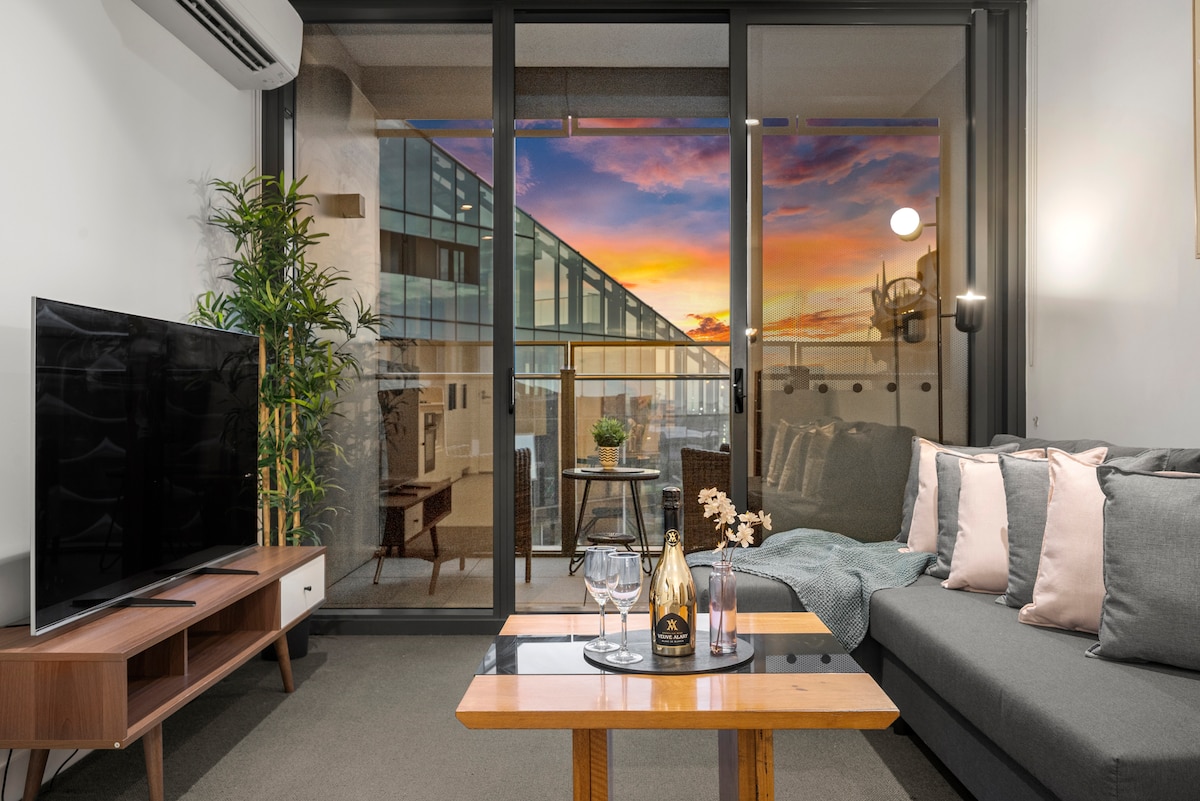 Experimente o melhor de Melbourne! Nosso lugar é bonito, aconchegante e convenientemente localizado. Assista aos remadores no rio Yarra, exercite-se em nossa academia e relaxe na piscina e no spa. Explore o caminho do Yarra, pegue o bonde gratuito para fazer compras na cidade e volte para o nosso bairro calmo. Sem TV — apenas sofás profundos para café, conversa ou um bom livro. Caminhe até restaurantes da marina ou assista a eventos no Marvel Stadium. Termine o seu dia na nossa varanda, rodeado pelas luzes da cidade.