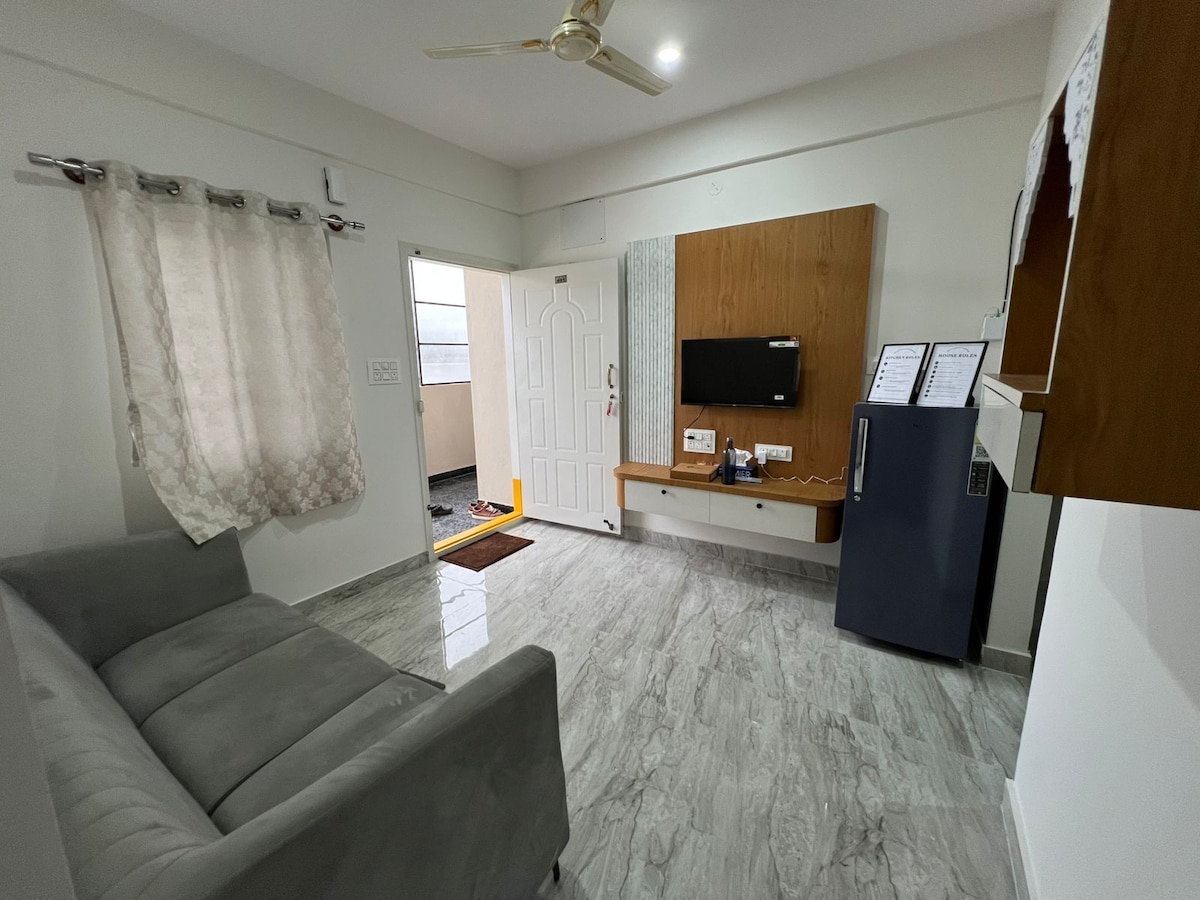 Olive 's Haven - Um acolhedor apartamento de 1,5 BHK com varanda em Electronic City Fase 1. Perfeito para viajantes de negócios, escapadinhas de fim de semana e, sim, é adequado para casais. A nossa casa oferece um espaço de estar elegante, uma cozinha totalmente equipada e um quarto confortável. Desfrute da sua estadia com privacidade para relaxar. Localizado numa comunidade segura com fácil acesso aos principais parques de TI, cafés, pubs e centros comerciais. Os transportes públicos e as principais estradas estão perto para sua conveniência.