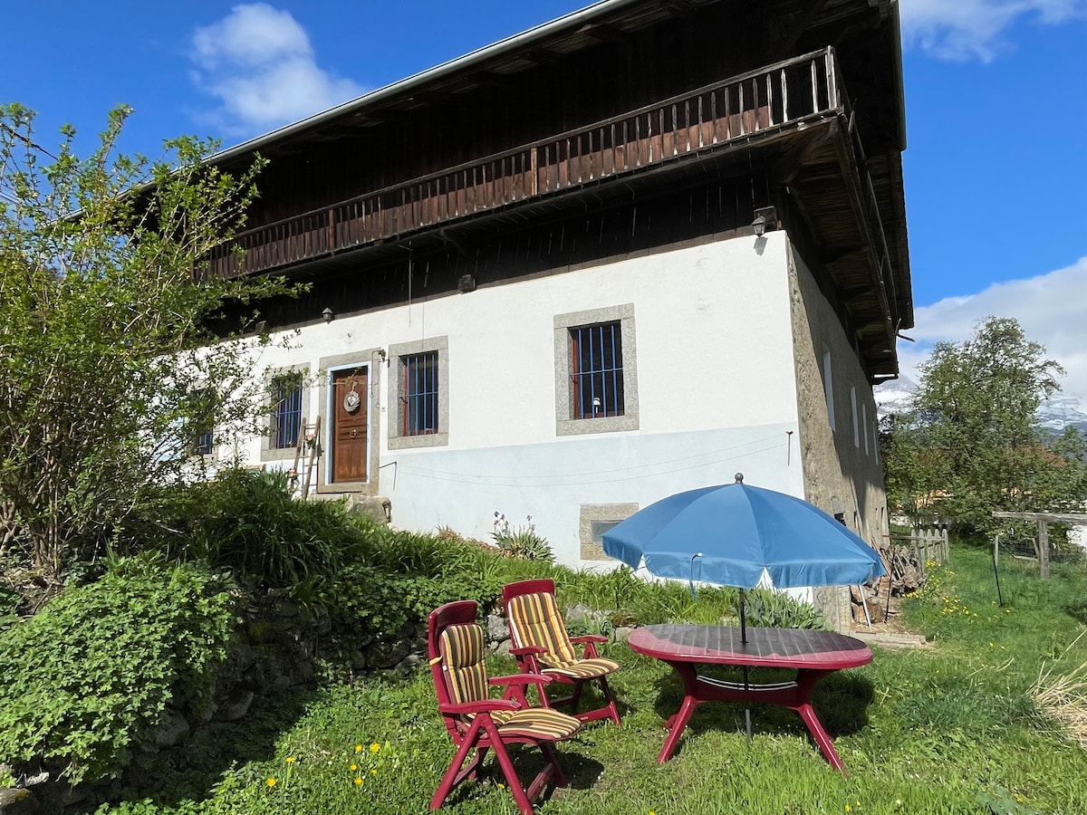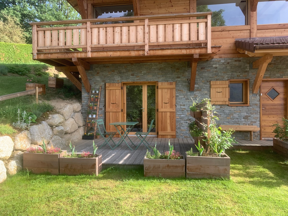 Em uma antiga fazenda reformada, um apartamento luminoso e confortável, com vista para um grande terreno privado, com jardim, fonte, terraços para refeições ao ar livre... fechado se você tiver animais de estimação. Um lugar tranquilo e charmoso, mas perto de todas as atividades e lugares interessantes que a região oferece. Belas noites de aperitivo e churrasco com vista para o Mont Blanc! Sol desde a manhã. Ideal para famílias, grupos de amigos e amantes da montanha autêntica.
