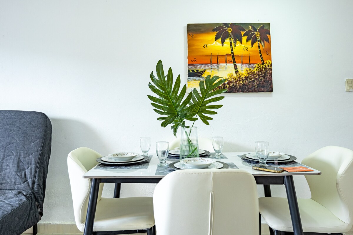 Tenha calma nesta escapadela única e tranquila. Experimente o paraíso no nosso apartamento em Dominus Marina Tracadero, perfeito para trabalho e relaxamento. Com secretária e Internet de alta velocidade, trabalhe remotamente enquanto desfruta de vistas para as Caraíbas. Até 6 hóspedes, com jardim privado e cozinha totalmente equipada. Desfrute de acesso direto à praia e piscinas, restaurante no local, bar e spa. Ideal para vistas inesquecíveis do pôr do sol e aventuras de mergulho com snorkel.