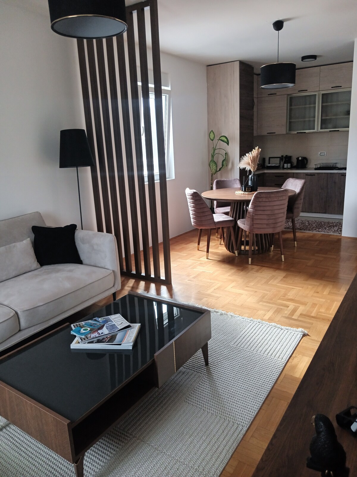 Bem-vindo ao nosso refúgio elegante e acolhedor com vistas incríveis no coração de Donja Lustva, Tivat! A apenas 1 minuto a pé da praia, restaurantes à beira-mar e do luxuoso Porto Montenegro, nosso encantador retiro é perfeito para uma escapada serena. Aproveite a comodidade de estar a poucos passos do cintilante Mar Adriático e da vibrante cena gastronômica local. Nosso espaço possui uma decoração moderna com um toque de charme costeiro, criando uma atmosfera acolhedora e convidativa.