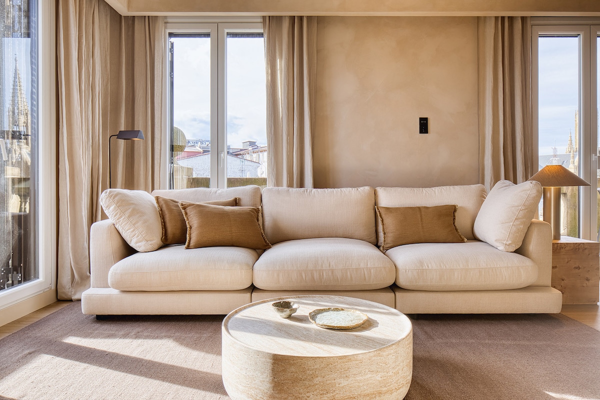 Abrace a beleza graciosa deste elegante apartamento com vista para o oceano junto à praia. A casa apresenta contrastes gritantes em meio a tons neutros, toques rústicos, uma área de estar em plano aberto, mobiliário personalizado, motivos contrastantes e duas varandas cobertas com um espaço lounge. Sigo o protocolo avançado de higienização da Airbnb, que foi desenvolvido com orientação especializada. A suite La Concha Bay tem 110 metros quadrados e é composta por um quarto duplo, casa de banho e uma grande sala de estar com terraço (não há cozinha, mas todos os serviços necessários para aquecer refeições cozidas e tomar o pequeno-almoço: encontrará um congelador, um micro-ondas, uma máquina de café e uma caldeira na sala de estar). A entrada é partilhada com um apartamento privado, mas ambos são totalmente independentes uns dos outros. As vistas são de tirar o fôlego, a praia de La Concha fica mesmo à sua frente, pode ver a Ilha de Santa Clara, a Montanha Urgull e a Montanha Ulia. Se gosta de comida, os melhores restaurantes e bares de tapas ficam a 5-10 minutos a pé. O La Perla Spa, um dos melhores centros de spa da Europa, fica a apenas 5 minutos de distância, pode relaxar, fazer exercício no ginásio ou fazer uma massagem lá. A Suíte é composta por um quarto, uma grande sala de estar e uma casa de banho totalmente equipada Estarei ao lado e terei todo o prazer em ajudá-lo durante a sua estadia em San Sebastián! De frente para o oceano, o apartamento está localizado no centro da cidade e a 7-10 minutos da Cidade Velha, onde pode encontrar os melhores bares e restaurantes de pintxos, zona comercial e mercado. A 10-15 minutos da estação ferroviária e rodoviária. Se tiver um carro para estacionar, pode ir ao La Concha Parking, mesmo ao fundo da rua, o preço é de cerca de 25 €/dia.