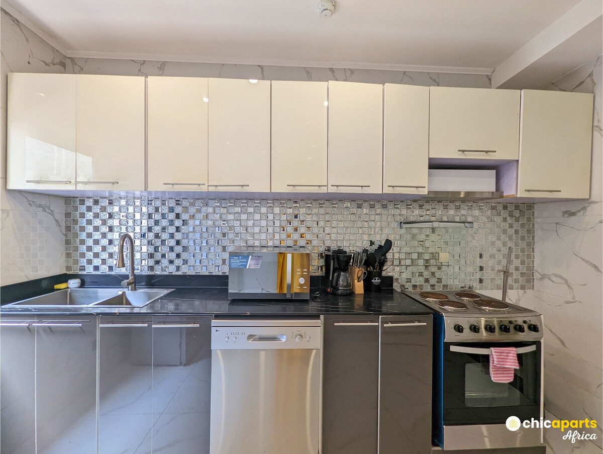 Apartamento elegante em Makepe (lado laranja) com decoração contemporânea, ar condicionado e Wi-Fi. Cozinha totalmente equipada, casa de banho moderna e cama confortável. BENEFÍCIO EXCLUSIVO: INCLUÍDO acesso à área de coworking KOLA localizada no mesmo edifício! Trabalhe num ambiente de negócios sem taxas adicionais. Segurança 24 horas por dia, 7 dias por semana, água garantida e localização estratégica. Perfeito para viajantes de negócios e nómadas digitais. Serviço de transporte pago do aeroporto para o alojamento.