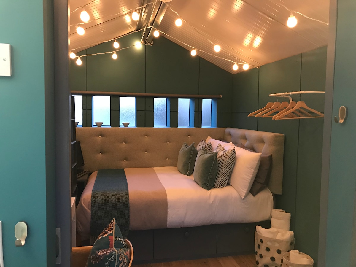 Espaço para relaxar nesta cabana de madeira com vista para o jardim. A água quente flui do chuveiro de cabeça de chuva. Tire um tempo para relaxar após um dia agitado a explorar Cork na banheira de luxo! Aquecimento central, Wi-Fi, cama king size, chá e café. Estacionamento gratuito e perto de dois serviços de autocarro locais. A cinco minutos de carro do Aeroporto de Cork e a vinte minutos de carro da estação ferroviária de Kent. Teremos todo o gosto em ir buscar a qualquer um deles!