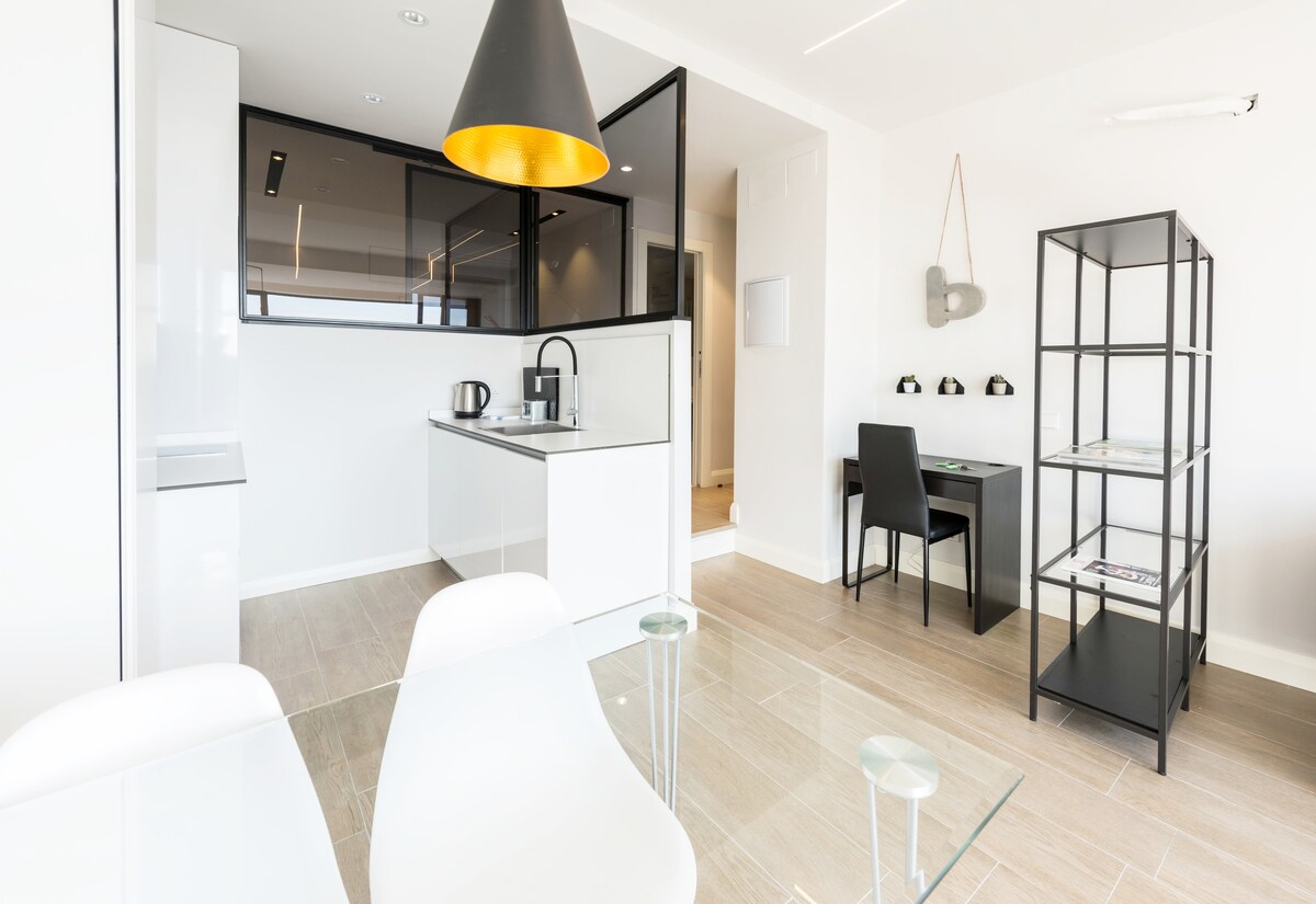 • Studio for up to 2 adults • Queen or double-size bed • Climate-neutral & fully carbon offset • Avg. 19 m2 • City views • Kitchenette • Access to a fully equipped shared kitchen • Access to shared laundry • Air conditioning • Regular professional cleaning • Local gym access included • Yoga mats & online yoga studio access included • Contactless access • Early check-in & late check-out (on request) • Fast WiFi • Smart TV • Free luggage storage • Baby crib available