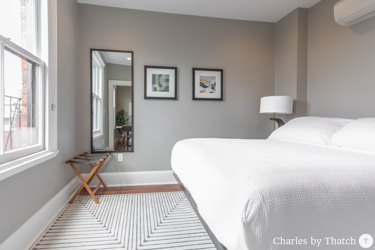 O J. Miller Flats é um dos poucos arrendamentos de curta duração geridos profissionalmente disponíveis na cidade e a localização é imbatível, no coração de Beacon Hill, na sua rua mais emblemática – Charles Street. Este apartamento de uma cama pode acomodar até 4 pessoas, tem uma cozinha completa, sofá-cama queen e novos móveis e design de interiores em 2022. Wi-Fi rápido, TV inteligente para streaming, elevador, entrada sem chave e a garantia de qualidade de Thatch tornam este apartamento uma aposta segura para viagens de lazer, trabalho ou em família.