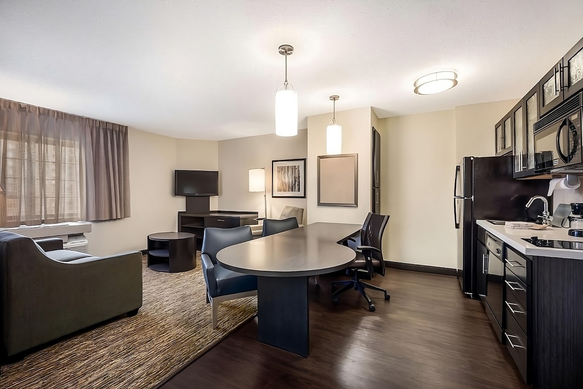 Welcome to this hotel Detroit Livonia, where extended stays meet home-style comfort just outside Detroit’s vibrant core. Start your mornings with a free hot breakfast, explore nearby Laurel Park Place, or take a short drive downtown for culture, sports, or events. Each suite features a full kitchen, high-speed Wi-Fi, and a comfy sitting area—perfect for business trips, weekend getaways, or longer stays. Pet-friendly and family-ready, with a fitness center and outdoor sports court.