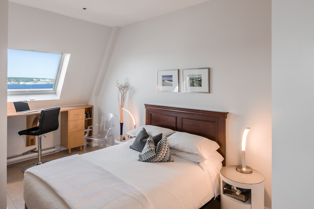Conforto e conveniência cercam você em nosso elegante pied-à-terre, todas as comodidades da vida suburbana escondidas no centro da cidade. O último andar é leve e arejado, com vista para o porto, varanda e tetos altos. Esta é a nossa casa particular e o orgulho de propriedade mostra. Estacionamento subterrâneo aquecido e outras comodidades facilitam a vida. Wi-Fi, Roku, móveis de qualidade. Nas proximidades, encontre: mercearia, bebidas alcoólicas, aluguel de carros, restaurantes e muito mais. Estadias mensais de 30 dias ou mais estão disponíveis. *31 noites evita impostos*