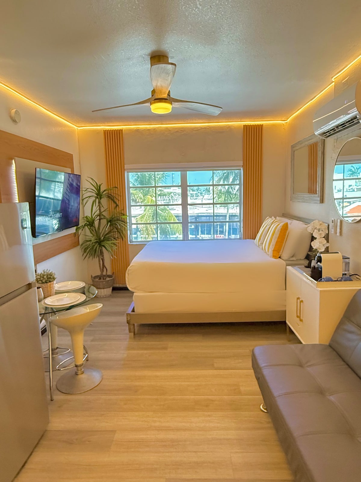Experimente o fascínio do nosso estúdio boutique remodelado, escondido no coração da vibrante South Beach. Atravesse a entrada privada na 7th com a Pensilvânia e abrace a harmonia perfeita de privacidade e conveniência. O nosso atencioso concierge 24 horas está empenhado em garantir o seu máximo conforto e satisfação, oferecendo recomendações personalizadas para melhorar a sua estadia. Lembre-se de que as nossas janelas não abrem por segurança!! Além disso, esta unidade mede 300 pés quadrados, o que é perfeito para um casal.