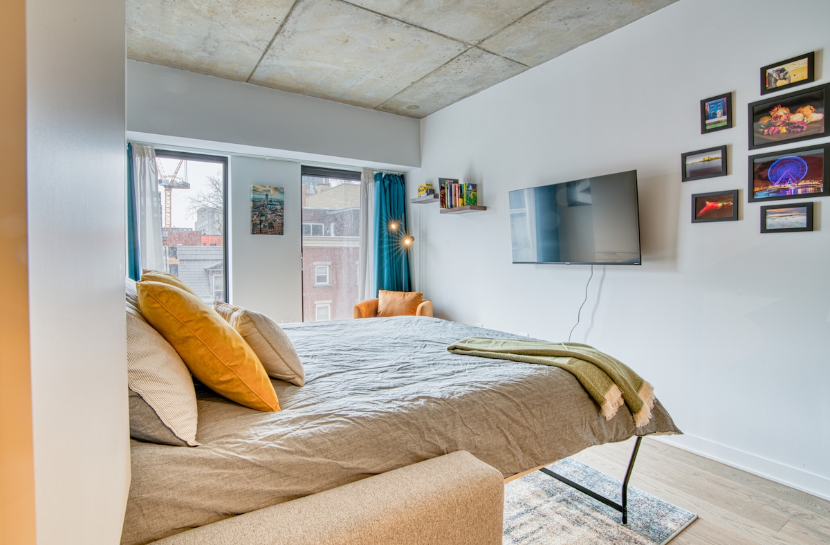 Delicie-se com o charme do Plateau neste loft iluminado e elegante! A luz natural inunda o espaço de conceito aberto, acentuando paredes de tijolos expostos, tetos altos e design moderno. Saia e mergulhe em um bairro vibrante e artístico repleto de cafés, boutiques e galerias da moda. Caminhe até os melhores restaurantes, teatros, mercearias e mercados, estações de metrô, ciclovias e Mont Royal — tudo o que você precisa para uma estadia autêntica e inesquecível no coração da cidade!🚲🍽✨