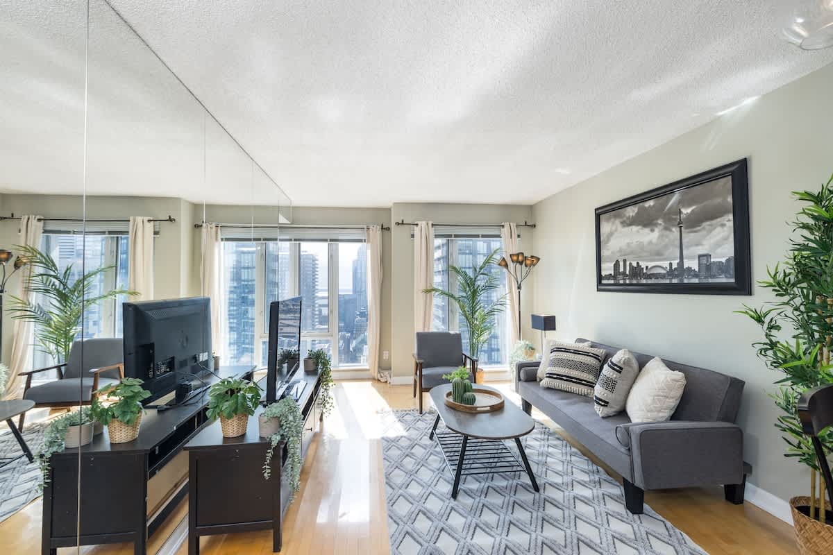 This modern, professionally decorated condo is your private oasis in Toronto’s vibrant Entertainment District. Walk to world-class restaurants, bars, theaters, and cultural attractions like the Art Gallery of Ontario. The condo is fully cleaned between stays to ensure a pristine environment. Whether you’re in town for business or leisure, this stylish retreat offers both convenience and luxury, all within walking distance of the best the city has to offer.