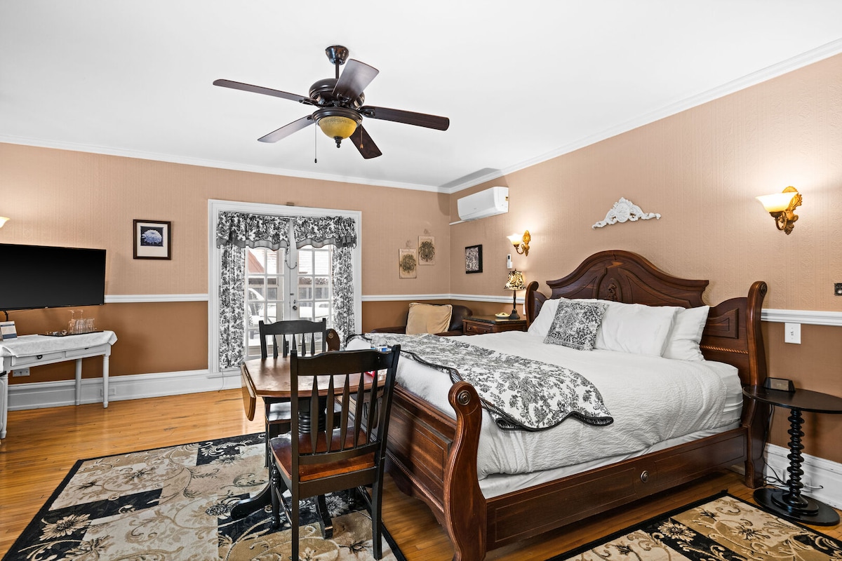 This stately suite is named for Mayor Fedo who lived in the mansion in the late 1980's while serving as Duluth's youngest Mayor yet elected, a controversial figure, he brings intrigue to this already fascinating mansion. The room is adorned with a queen-size bed, armoire, gas fireplace, A/C, whirlpool tub, Smart TV, refrigerator, microwave, coffee maker and so much more. This property is intended for adult getaways, no persons under the age of 16 are permitted.