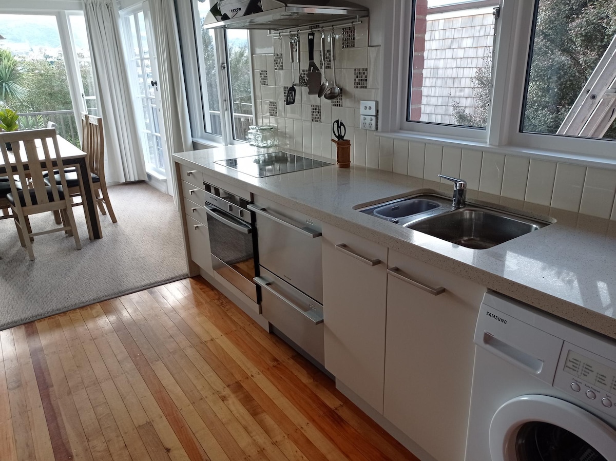 Os fotógrafos adoram tirar a fotografia perfeita do pôr do sol e é uma excelente localização para aceder à Península de Otago. Recém-construído, encantador, tranquilo e acolhedor, com vistas espetaculares para o porto e para a cidade a partir da bela baía de Vauxhall. Cama queen e quarto separado para a sua bagagem. Produtos básicos de pequeno-almoço Estacionamento para 2 carros debaixo da casa. É necessário subir 22 degraus do carro até à porta da frente. Não são permitidos bebés, crianças pequenas ou crianças e apenas DOIS hóspedes podem ficar, por favor.