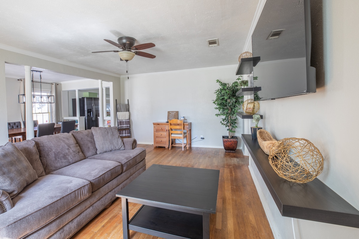 Uma casa acolhedora longe de casa. Limpo e moderno com uma inspiração nativa. Equipado com uma cozinha totalmente abastecida, máquina de lavar e motorista, Wi-Fi, sala de cinema e jogos dedicada, jogos familiares e lareira ao ar livre. A casa fica a 2,4 milhas do casino Choctaw e do centro de eventos. Visite o Centro de Cultura Choctaw (dedicado a explorar, preservar e mostrar a cultura e a história do povo Choctaw) .**ATUALIZAÇÃO** Não é permitida a mineração de criptomoedas de qualquer tipo que use mais eletricidade do que o normal **
