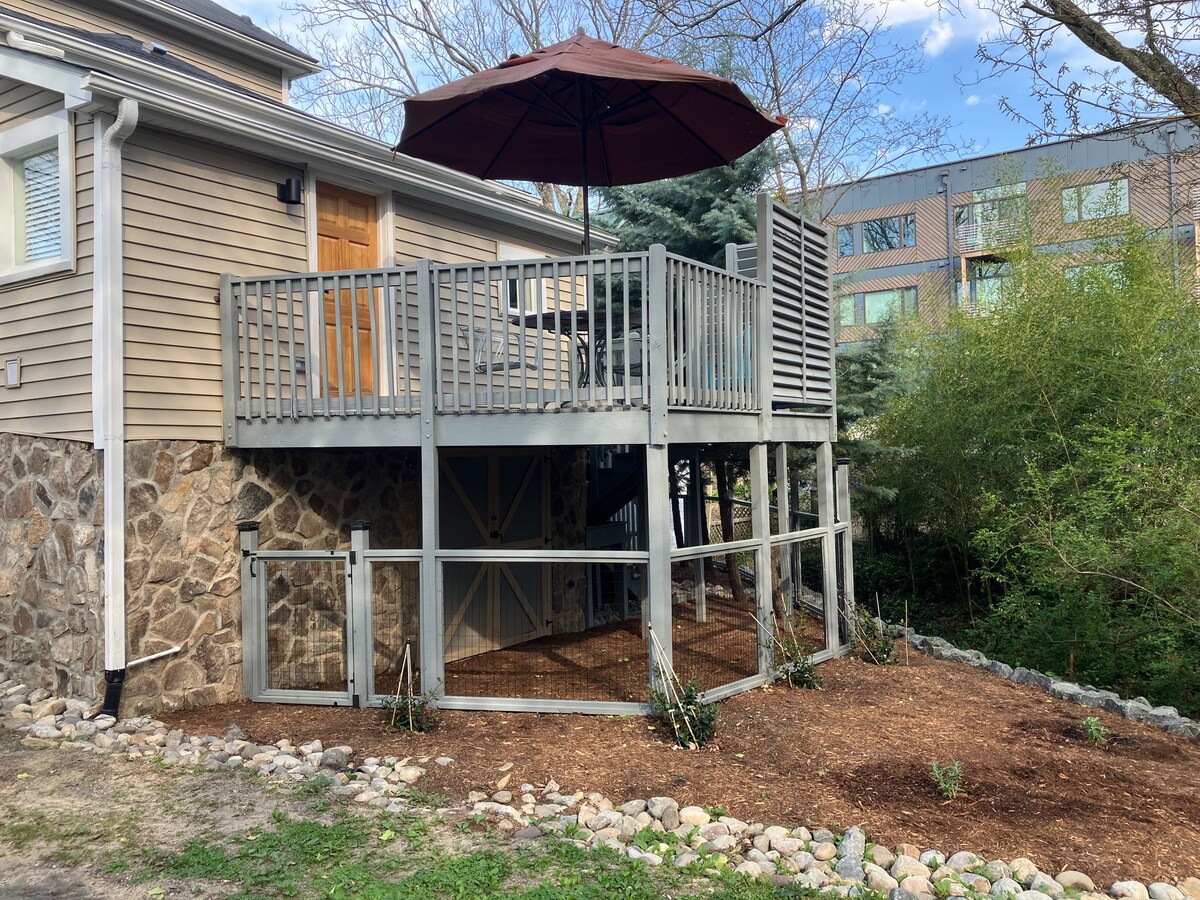 Second floor of recently-built garage apartment in a charming, peaceful Durham neighborhood. Twenty minutes to RDU Airport, five minutes to Duke's East Campus and ten minutes to West Campus, we are an easy walk to a range of locally-owned restaurants. Lovely, light-filled apartment has a bedroom, full kitchen and living area, bathroom, private entrance, and patio with seating. Occasionally, we may have first-floor space available at extra cost. Well-behaved pets welcome. See below for fees.