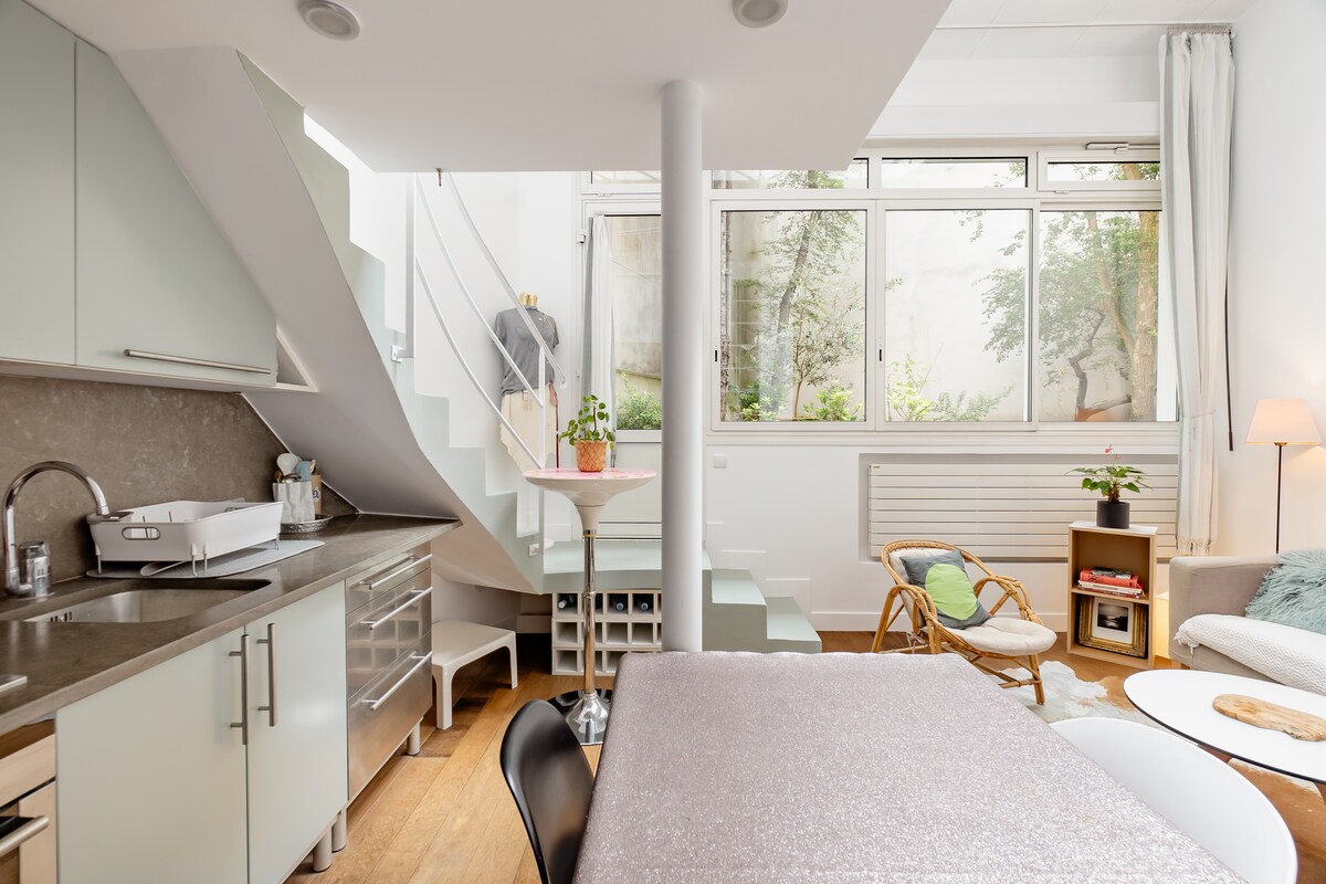 Com vista para o nosso deslumbrante pátio interior e para a encantadora igreja vizinha, o seu pied-à-terre oferece vistas abertas, luz natural incrível e tranquilidade absoluta - mesmo no coração de Paris. Cada apartamento inclui uma sala de estar com um sofá-cama, uma área de jantar com uma mesa redonda, um belo quarto com uma cama de luxo com qualidade de hotel, uma cozinha aberta totalmente equipada com uma máquina de lavar louça e uma máquina de lavar e secar roupa, uma sala de chuveiro e uma sanita separada.