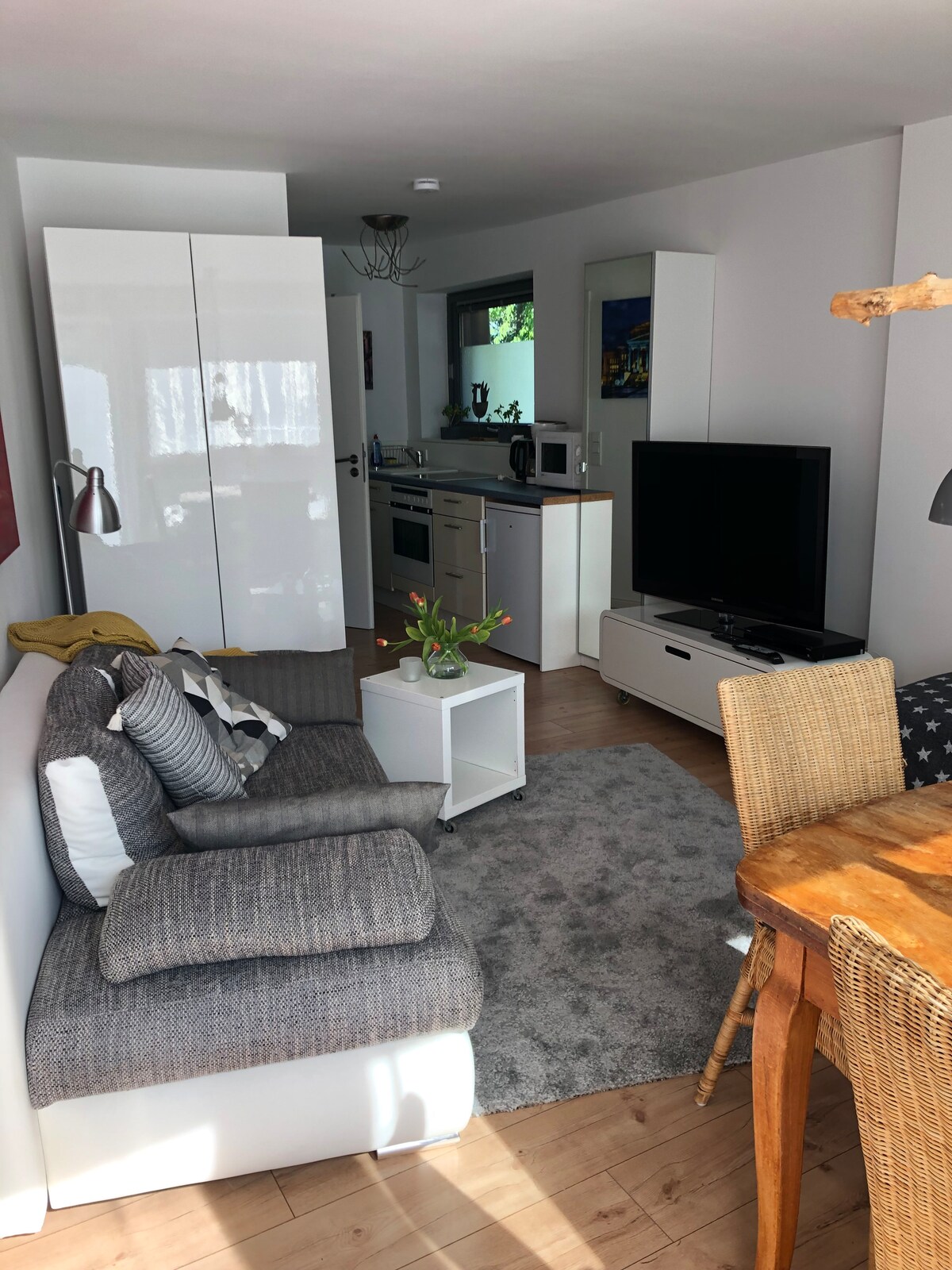 A pequena casa de hóspedes está localizada numa pequena dependência da nossa Casa independente e tem uma entrada independente. O quarto tem um casa de banho privada com chuveiro. Check-in e check-out autónomos. Não são permitidos animais de estimação. Ar condicionado Louças e talheres Secador de cabelo Aquecimento Wi-Fi Água quente Champô Gel de banho Roupa de cama Abdunklung TV Máquina de café. Ketler Mini Frigorífico Forno Torradeira Entrada privada Estacionamento gratuito na rua. Casa de um nível