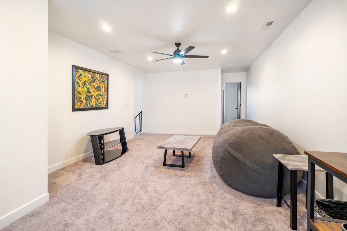 Aconchegue-se nesta suíte de hóspedes encantadora e moderna de 1100 pés quadrados! Passe uma noite maravilhosa em seu deck privativo e banheira de hidromassagem com uma vista requintada do vale, montanhas e vida selvagem. Esta espaçosa unidade no andar de cima fica em um bairro privado ao longo do Parque Recreativo Dimple Dell, com quilômetros de trilhas, lar de corredores, equitadores e ciclistas. Apenas 5 minutos de Little Cottonwood Canyon com esqui e caminhadas de classe mundial. Perto de qualquer coisa/tudo o que você precisa. 1 quarto king privativo e 1 cama queen extraível.