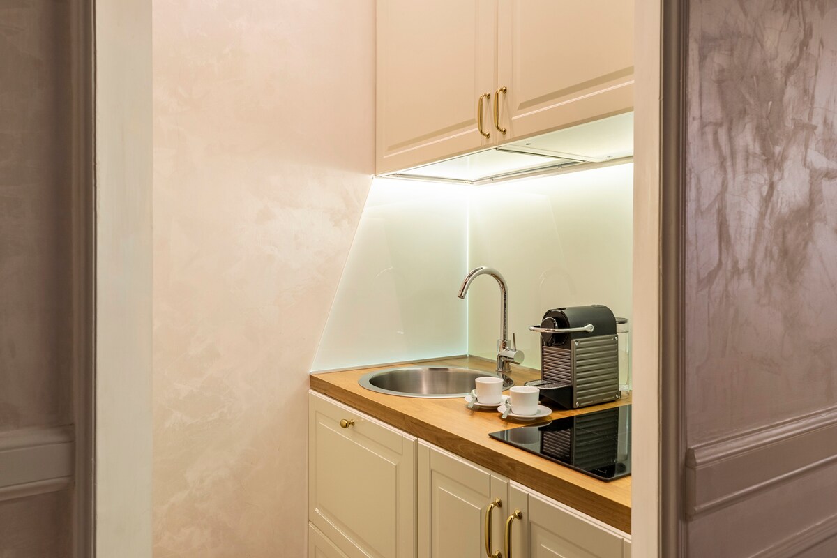 No coração de Roma, apartamento elegante e encantador, com dois quartos duplos, recentemente renovado e cuidadosamente mobilado para oferecer uma estadia romântica e confortável. A sua localização privilegiada, a poucos passos da Via Veneto, da Embaixada Americana, do parque Villa Borghese e das estações de metro de Spagna e Barberini, permite-lhe explorar a cidade enquanto passeia pela beleza e pela história. Nas proximidades encontrará mercados, restaurantes, pizzarias, farmácias e paragens de táxi/autocarro. Um retiro urbano ideal e refinado.