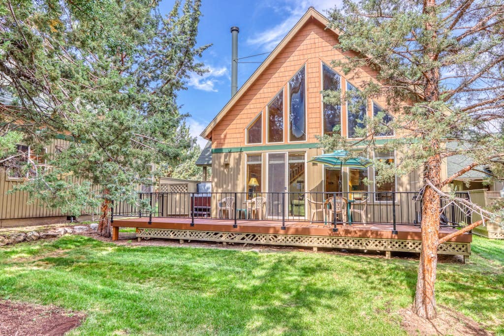 Este chalé Eagle Crest recentemente remodelado tem tudo o que você poderia pedir. A casa bem conservada tem enormes tetos abobadados na grande sala e no quarto principal, uma espaçosa sala de jantar, 3 quartos (2 camas king size e 1 queen size), um loft e área de lavanderia. Desfrute do espaçoso deck traseiro com vista para o campo de golfe com uma banheira de hidromassagem privativa (para 4 pessoas de cada vez) e móveis ao ar livre. Esta casa tem tudo o que você precisa para sua escapada para o centro de Oregon!