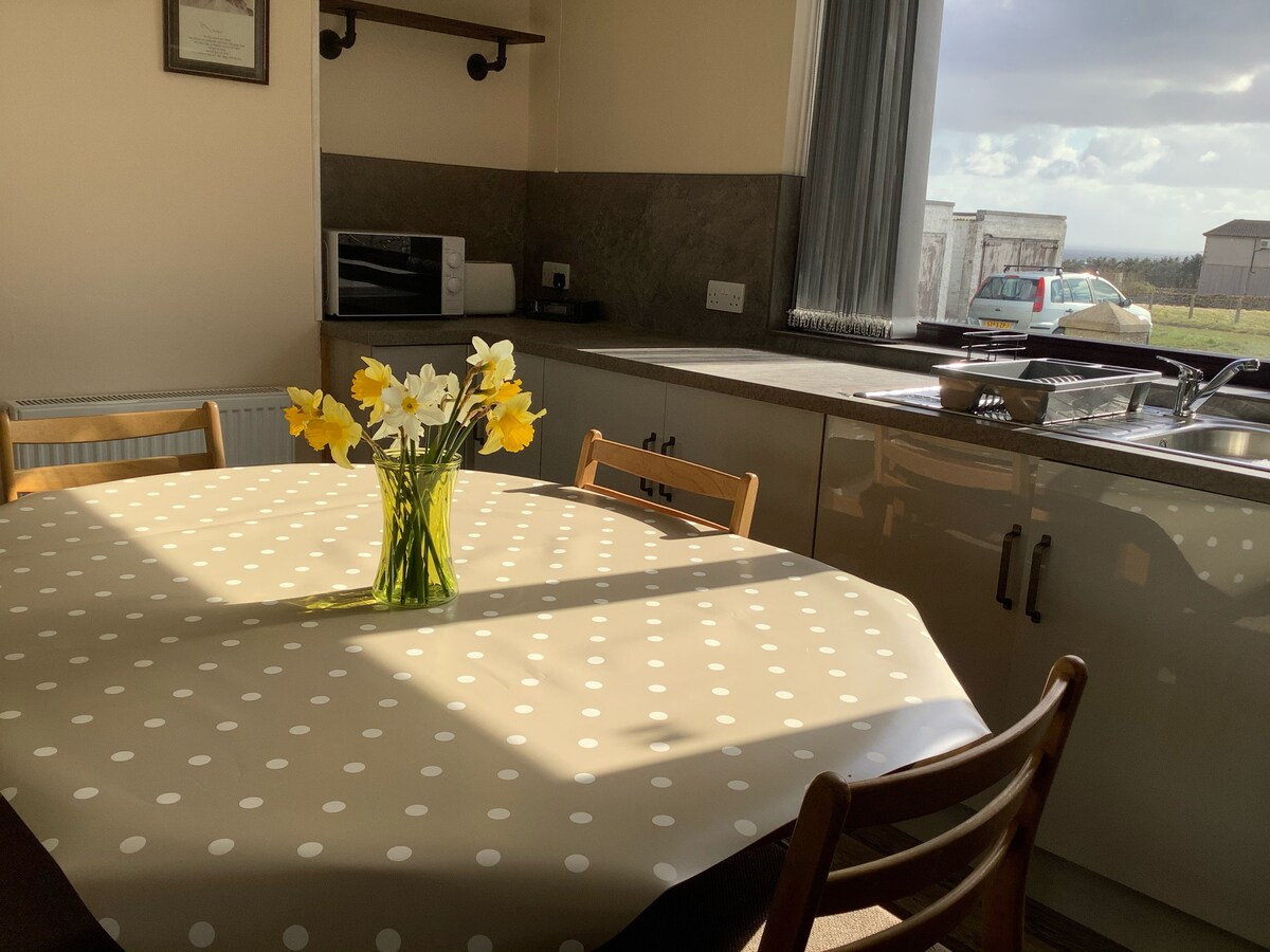STL: OR00349F Pequeno, mas funcional, nosso apartamento de 2 quartos no primeiro andar tem todas as comodidades de que você precisa para uma estadia confortável. Nossa propriedade possui excelentes vistas para o mar sobre Scapa Flow, Hoy e além, bem como vistas para o campo a partir dos quartos. Situado a 3 milhas do centro da cidade de Kirkwall, com caminhadas pelo país a partir da nossa porta, oferecemos o local ideal para explorar Orkney. Temos estacionamento gratuito fora da estrada e um espaço de secagem ao ar livre. Observação: esta propriedade é acessada por escadas e não há elevadores, etc. disponíveis.