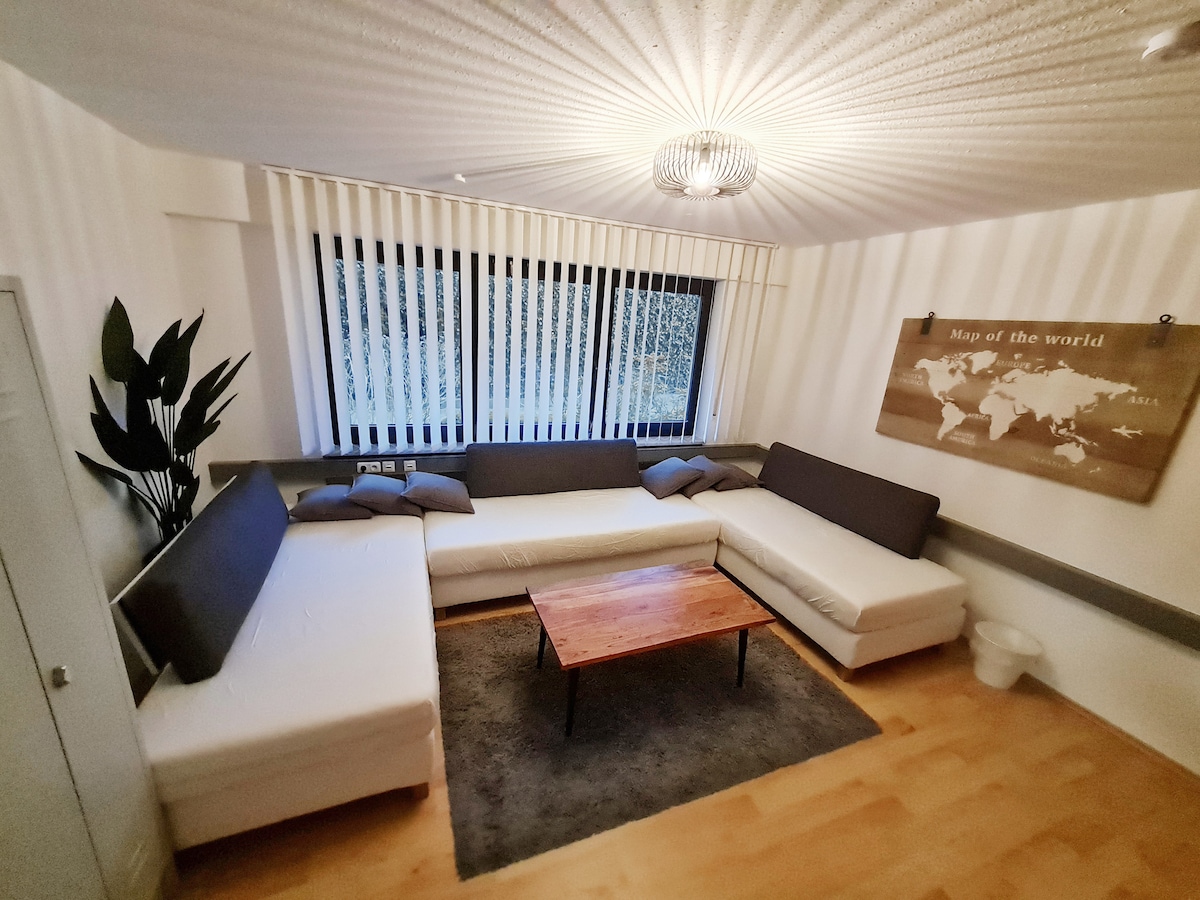 Willkommen in meinem gemütlichen Heim mit Blick in den Garten! Im März 2025 wurde renoviert und lädt somit mit den großen hellen Fenstern zum verweilen ein. Die geräumige Wohnung bietet genug Platz für bis zu 8 Gäste und ist somit ideal für größere Gruppen oder Familien. -sehr schnelles WLAN -einfaches Check in - mit detaillierter Anleitung -Handtücher,Bettwäsche und weitere Annehnlichkeiten im Bad. -Föhn & voll ausgestattete Küche zum kochen -moderne Einrichtung