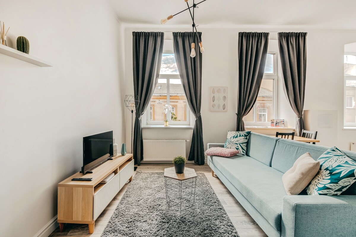 O apartamento está localizado na cidade velha, perto das estações centrais de ônibus e trem. O apartamento foi reformado em 2019 (2º andar). Interior de estilo escandinavo misturado com tetos altos e janelas arqueadas proporcionam conforto e aconchego. Os hóspedes serão acomodados com equipamentos necessários, roupas de cama e toalhas. Brindes como xampu, sabonete, chá e café estarão disponíveis. Estacionamento público pago na rua perto do edifício.