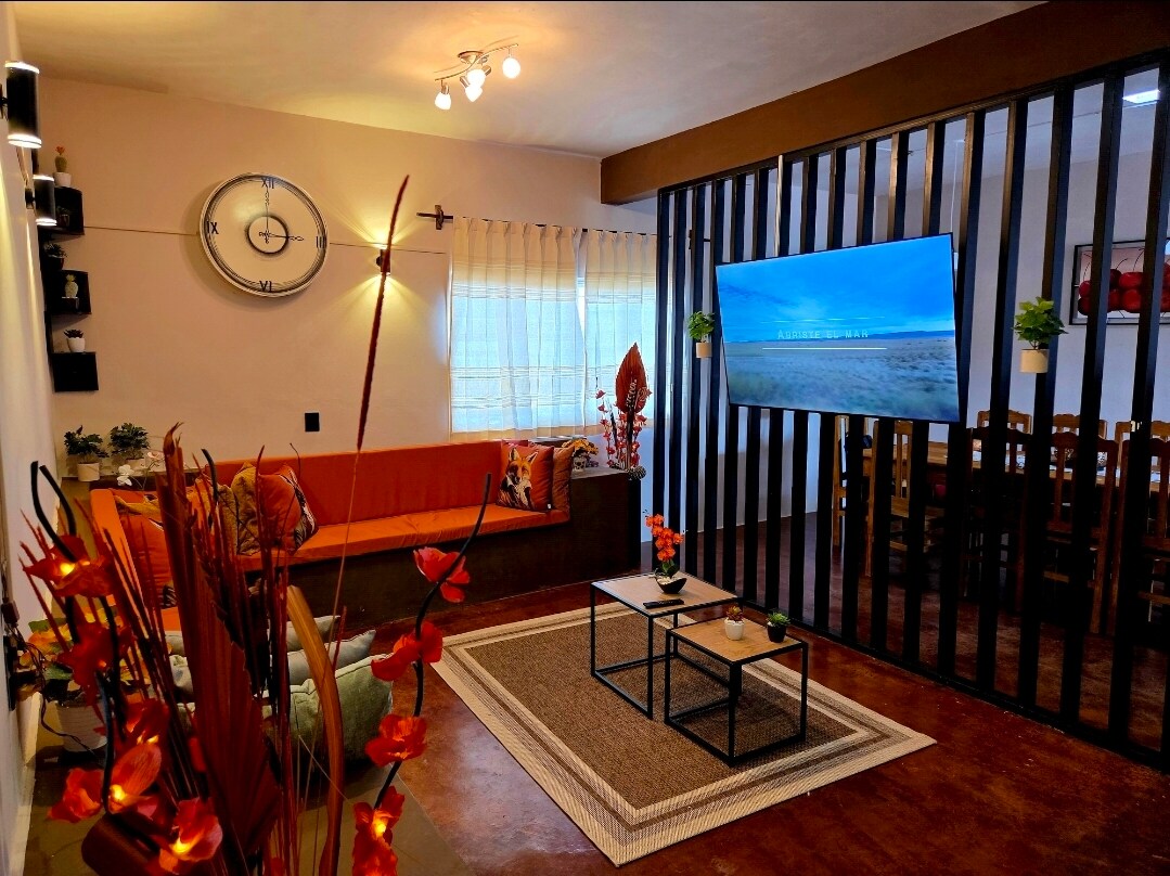 Descubre la comodidad y el encanto de nuestra casa, perfecta para familias y grupos de amigos, cuenta con espacios ideales para relajarse, Situada en un vecindario tranquilo, pero a pocos minutos de las principales atracciones turísticas, restaurantes y tiendas, es el lugar perfecto para explorar la ciudad. Además, ofrecemos Wi-Fi gratuito, estacionamiento privado y todas las comodidades necesarias para que te sientas como en casa. ¡Reserva ahora y disfruta de unas vacaciones inolvidables!