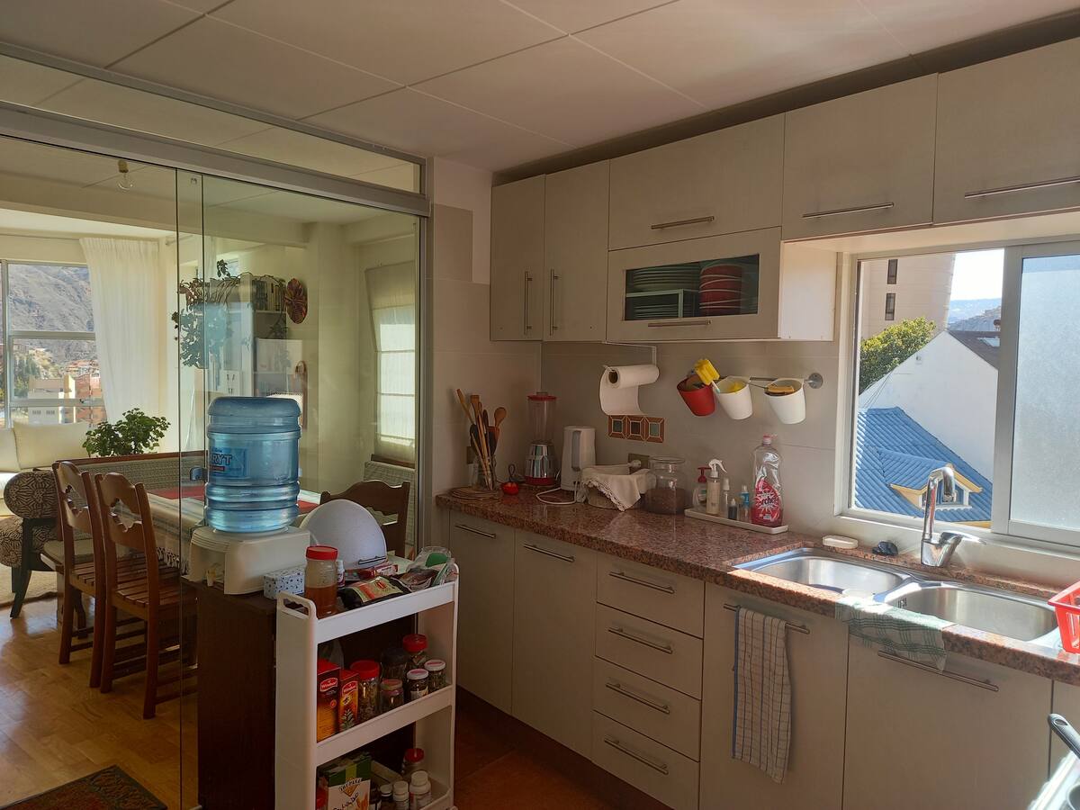Teremos o maior prazer em recebê-lo no nosso apartamento no coração de San Miguel, uma área tranquila para relaxar, rodeada por restaurantes que oferecem todos os tipos de experiências culinárias nacionais e internacionais. Ideal para uma estadia de férias ou de negócios. Este apartamento de 100 metros quadrados tem dois quartos, duas casas de banho e é muito acolhedor, o que é importante em La Paz porque é uma cidade com um clima frio.