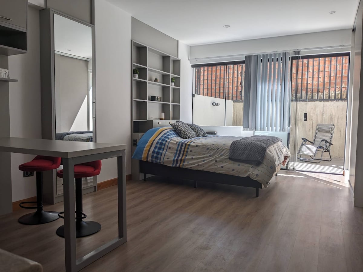 O elegante apartamento de 1 quarto tem uma cama de 2 camas e meia, casa de banho privativa, smart TV no quarto e outra TV na sala, com casa de banho de visitas, tem máquina de lavar roupa, lavandaria, na cozinha tem um micro-ondas, frigorífico, conjunto de panelas, totalmente equipada, o Parqueo está fora das instalações. A sala de estar tem um sofá-cama para 2 pessoas. A um quarteirão da embaixada da Venezuela.🤩 Ginásio e campo de Wally.