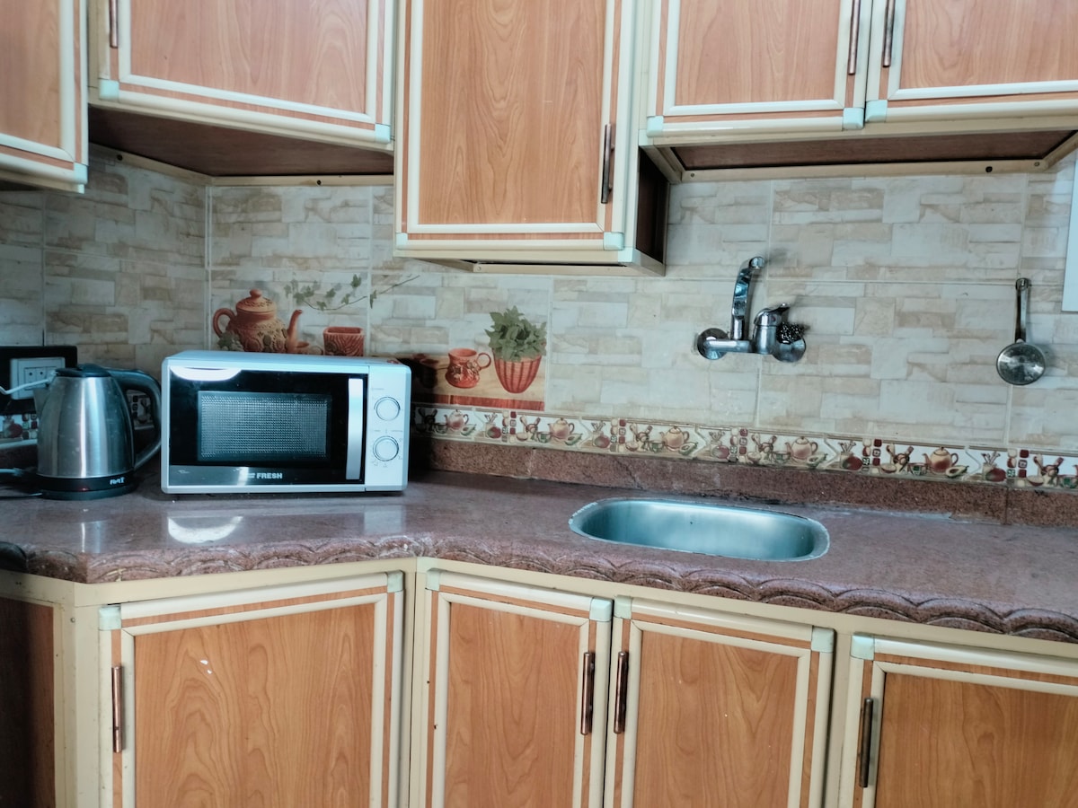 Desfrute de calma e relaxamento com sua família nesta residência tranquila. A casa é composta por um quarto, uma cozinha e um banheiro equipado com todos os aparelhos. Fica no primeiro andar, após o térreo, em uma rua popular e tranquila, ao lado do Banco Al-Ahli, do restaurante El-Shabrawy, de um grupo de cafés e de uma cadeia de restaurantes internacionais, árabes e locais. Transporte para todos os lugares 24 horas. 5 minutos a pé até o rio Nilo, 3 minutos até o metrô de Maadi, de 20 a 25 minutos de carro até as pirâmides de Gizé, de 20 a 30 minutos de carro até o Museu Egípcio e o centro do Cairo. O mais importante que distingue a casa e o bairro é a segurança.