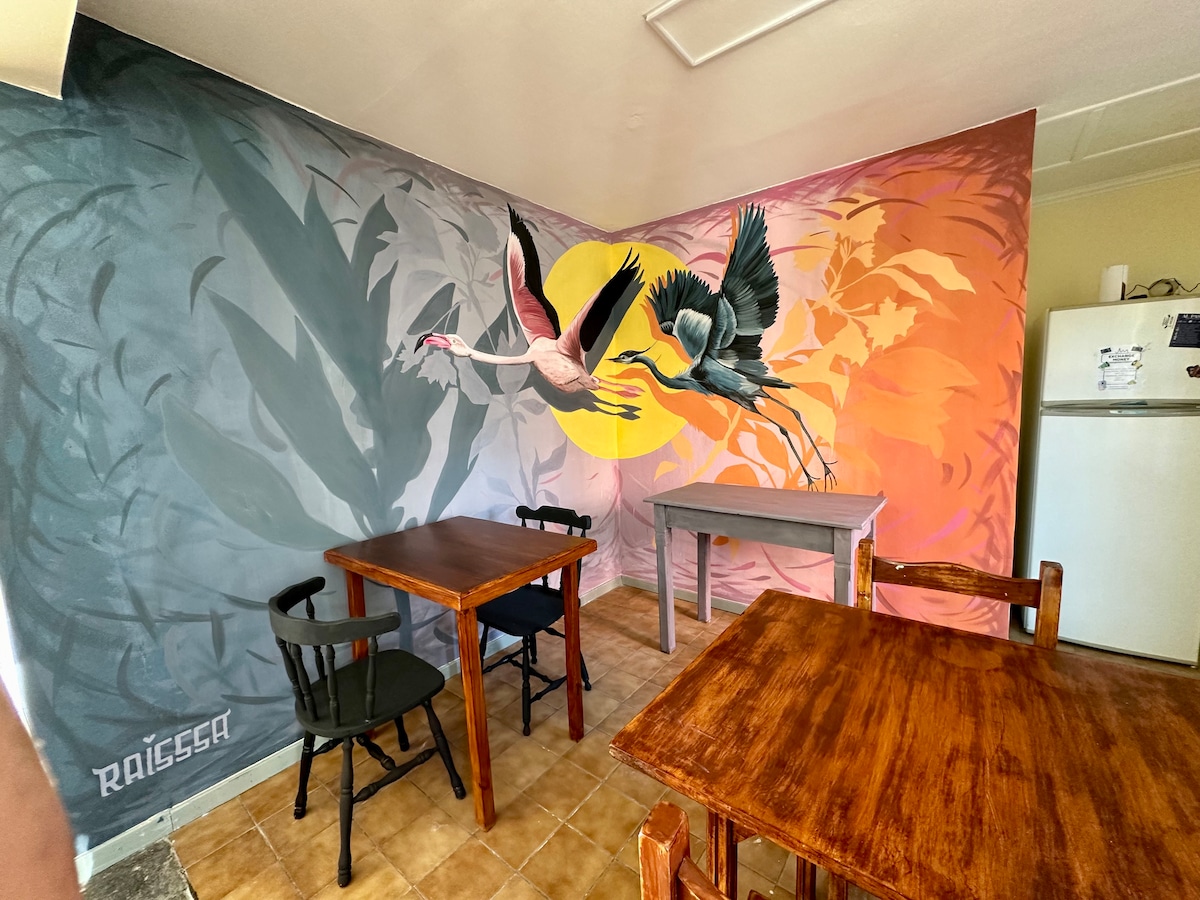 🌸 Um refúgio acolhedor em El Calafate, a um quarteirão do centro da cidade e perto da orla marítima. Pequeno-almoço incluído🧉, Wi-Fi, aquecimento e estacionamento🚗. Cozinha partilhada🍳, ajuda com passeios, bicicletas🚲, comida e câmbio de moeda. Ideal para descansar após um dia de aventura na Patagónia🏔️. Estamos ansiosos por fazê-lo sentir-se em casa, longe de casa. 💛