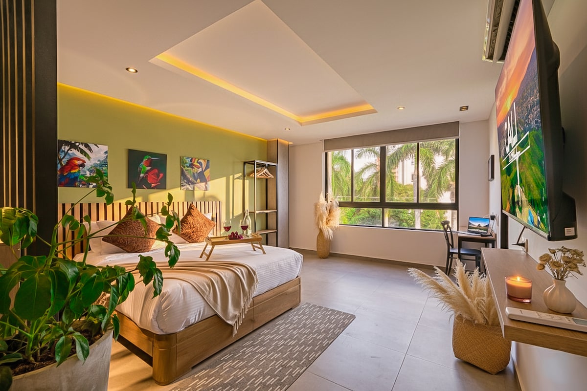 Enjoy a modern studio apartment at Miro Living, featuring a cozy design, natural light, and all the comforts for your stay. Unwind by the pool, work out in the gym, get things done in the coworking space, or watch the sunset from the 360° rooftop terrace. Located in a safe and strategic area in southern Cali, close to everything. Perfect for couples, business travelers, and anyone seeking comfort with style.