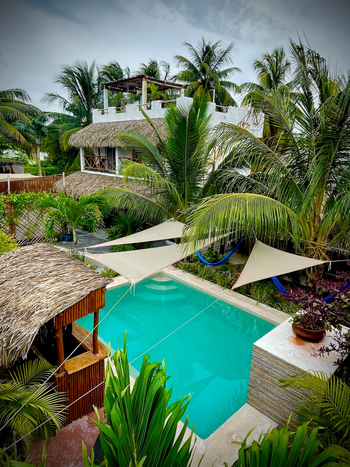 Make this beautiful vacation home your own! Enjoy the entire paradise that is Casa Om just for you and your group. This 3 unit vacation property surrounds a stunning garden, plunge pool and roof-top terrace ideal for yoga, chilling or star-gazing. Casa Om comfortably fits 8-10 people in 3 separate units: 1 bedroom suite with kid’s room, 2 bedroom suite and 1 bedroom cottage (palapa). The property is located 2 mins on foot from town and 6 mins to the pristine beach.
