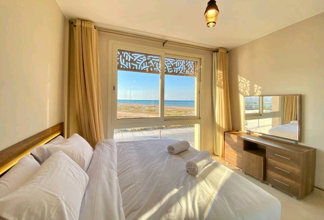 M7 POOL IS UNDER CONSTRUCTION UNTIL 15TH OF MARCH) Seaview apartment located in Mangroovy Residence - a tranquil area of El Gouna - ready to entertain you all year long with beach vibes under the sunbeams. Situated just 140 meters from the private beach with easy access to all surrounding hotspots and facilities. The amenities of this modern apartment include free access to the pool, beach, parking, and Wi-Fi.