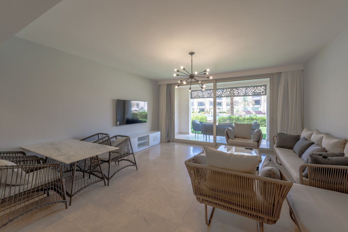 @ Scarab Club, El-Gouna; um dos complexos fechados mais exclusivos de Gouna. Um lindo apartamento no piso térreo com um quarto (cama king-size), uma cozinha aberta totalmente equipada, sala de estar com uma TV de tela grande com canais via satélite gratuitos, um sofá-cama que pode acomodar dois e um terraço agradável e acolhedor. O terraço é espaçoso, mas é cercado para melhor privacidade e tem vista para duas grandes piscinas diretamente na frente.