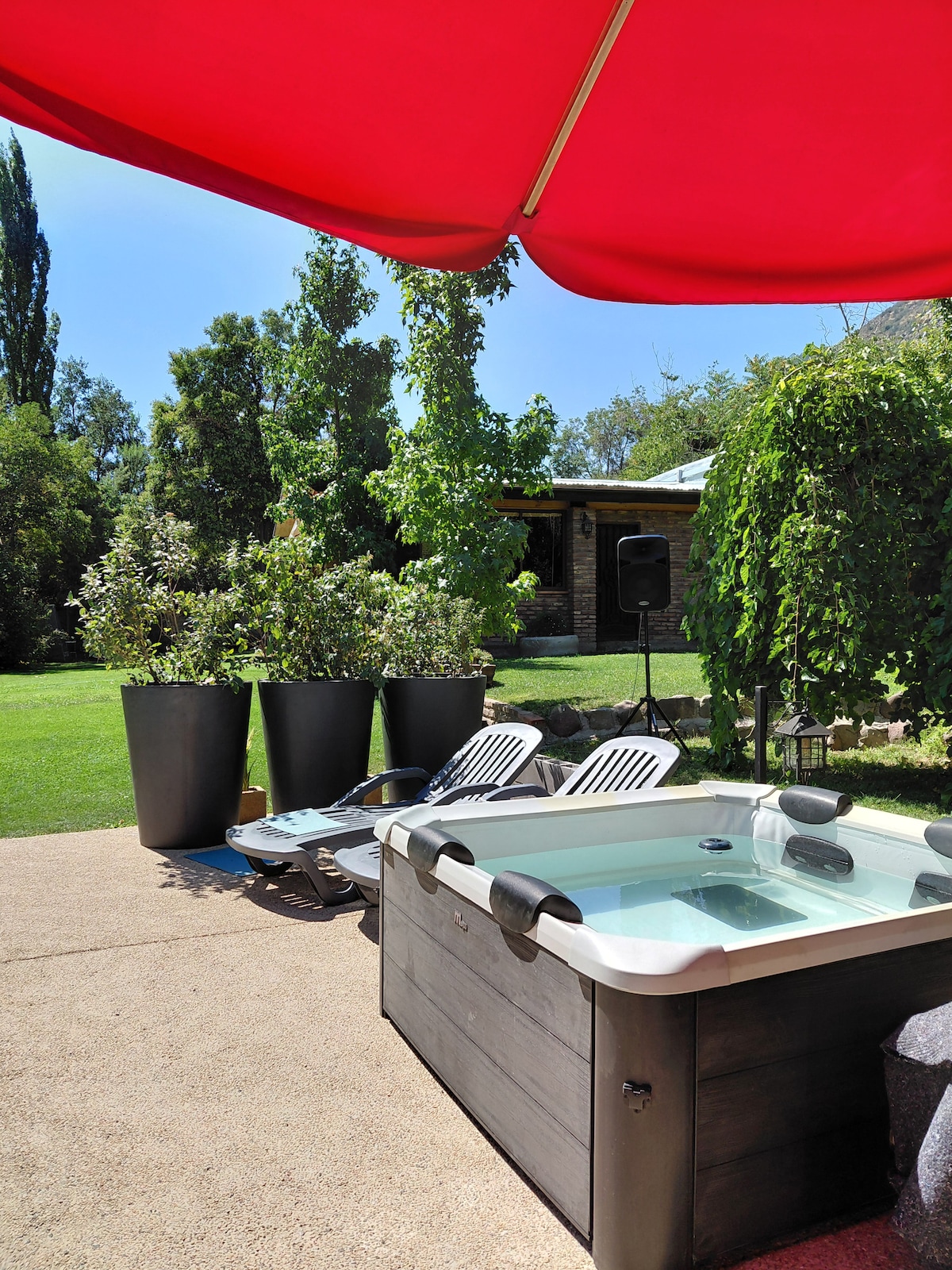 Chalé e piscina de uso exclusivo, tranquila cidade de El Ingenio, a 18 km da Plaza San José de Maipo. Casa de 65 m², terreno de 500 m². Acomoda 6 pessoas, 2 quartos, 2 banheiros, 1 cama de casal, 1 cama ninho e 1 beliche. Há lençóis e toalhas, cozinha equipada, lenha, piscina de 3,5 x 5 m x 1,30 m. Local cercado, 2 ANIMAIS DE ESTIMAÇÃO são aceitos. PROIBIDA MÚSICA NO JARDIM. Mín. 2 noites. Chegada de ônibus, van, carro, bicicleta, estrada pavimentada. Há Wi-Fi, armazéns. Vista da cordilheira.