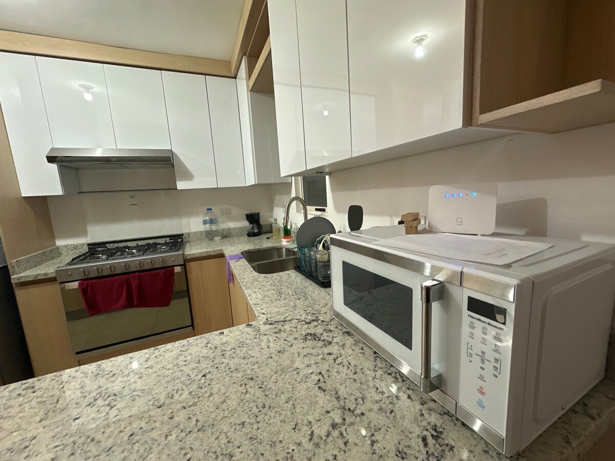 Lindo apartamento com um ambiente familiar e um estilo moderno e acolhedor! Excelente opção para descansar e desfrutar. Totalmente equipado, roupa de cama, almofadas e colchões de alta qualidade para oferecer o máximo conforto e descanso. Tem uma cozinha completa, fogão, forno, frigorífico, micro-ondas e liquidificador. Excelente localização em frente a uma área industrial e estudantil. Perto dos principais centros comerciais, a 20 minutos do aeroporto, a 8 km do Parque Fundidora, Cintermex e do centro de Monterrey.