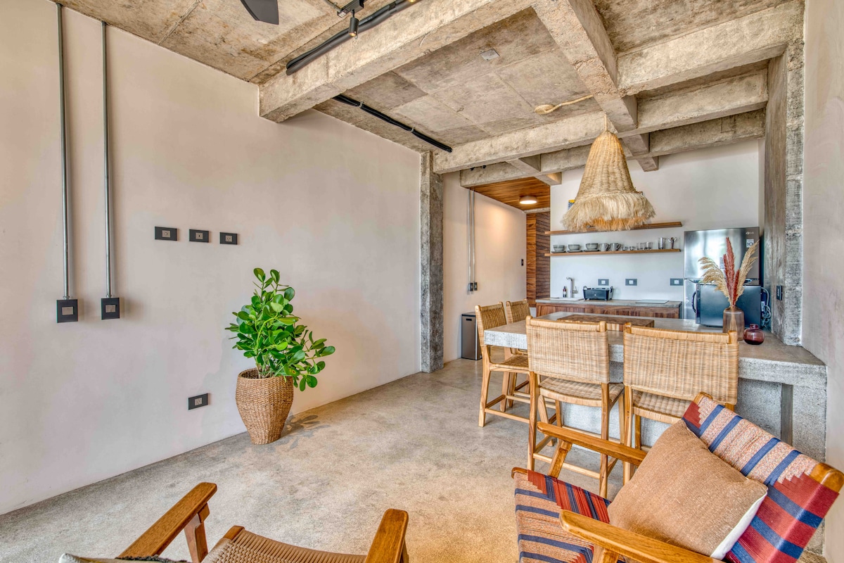 Apartamento moderno de 1 cama/1 banheiro no centro de Jaco c/AC