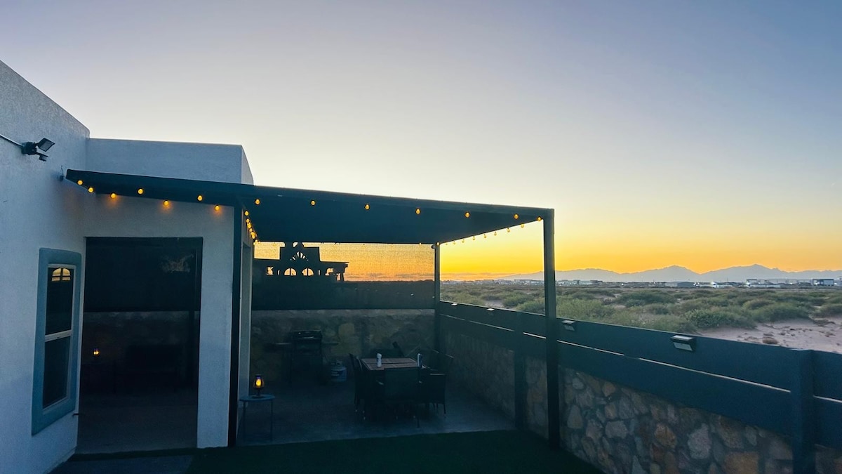 Localizada em um bairro tranquilo, a apenas 25 minutos do Aeroporto Internacional de El Paso e a 22 minutos do Forte Bliss, nossa casa é perfeita para militares, famílias e viajantes. Convenientemente perto de TX-375, Montana 62 e I-10, oferece um retiro relaxante com um luxuoso jacuzzi de spa, camas confortáveis, uma cozinha bem equipada e Wi-Fi gratuito. Desfrute de jogos de fliperama clássicos e um espaço limpo e bem conservado projetado para seu conforto e conveniência.