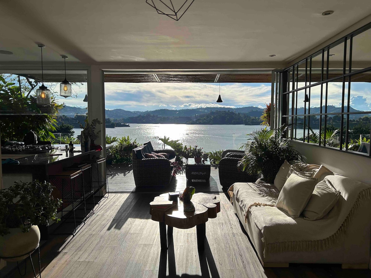 A Casa Chévere é o refúgio perfeito para relaxar e recarregar com a família e amigos! 🌿 Acorde com vistas deslumbrantes para o Lago Guatapé, vegetação exuberante e canto de pássaros enquanto desfruta de arepas e café ao pequeno-almoço ☀️ Destaques: Banheira 🛁 de hidromassagem para 8 pessoas 🛶 Caiaques para 6 pessoas Wi-Fi ⚡ RÁPIDO da Starlink Cozinha 🍳 completa, churrasqueira, fogueira A 📍 15 minutos de La Piedra del Peñol 🏞️ 25 minutos da cidade de Guatapé