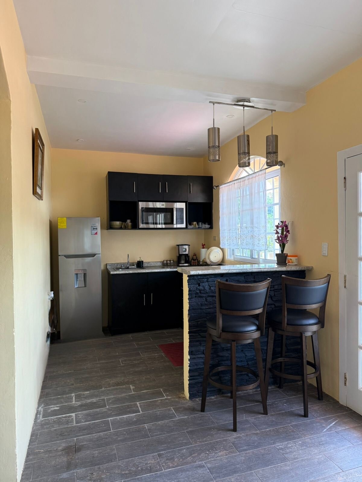 Encantador apartamento novo com uma estadia aconchegante de uma peça mobiliada perfeita para desfrutar com seu companheiro, com cozinha equipada (geladeira, micro-ondas, fogão elétrico, torradeira, chaleira elétrica), banheiro, ar-condicionado e um local de trabalho, além de um pátio com bela vista para uma árvore de ceiba. Excelente localização, com acesso pavimentado: Centro - 8 min Cais de Cabotagem - 10 min Aeroporto Internacional Golosón - 20 a 25 min Farmácia mais próxima - 3 min
