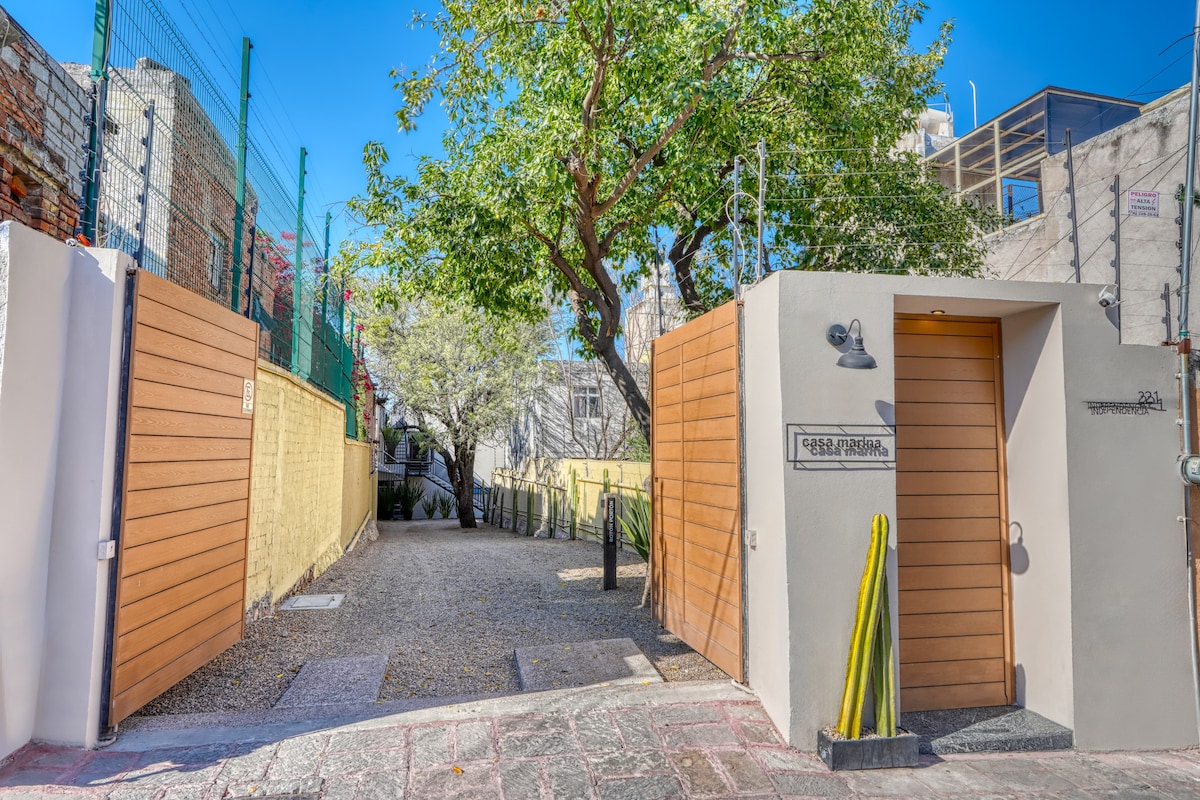 Loft moderno y completamente equipado en el corazón del Centro Histórico de Querétaro. Ideal para parejas, viajeros de trabajo o estancias medias. Cuenta con: • Tapanco con cama QS • Sofá cama matrimonial • Aire acondicionado • Cocineta equipada • Baño completo privado • Comedor para 4 personas • TV y excelente ubicación A solo unos pasos de restaurantes, cafés, museos y todo lo mejor del centro. Perfecto para disfrutar la ciudad caminando o trabajar cómodamente durante tu estancia.