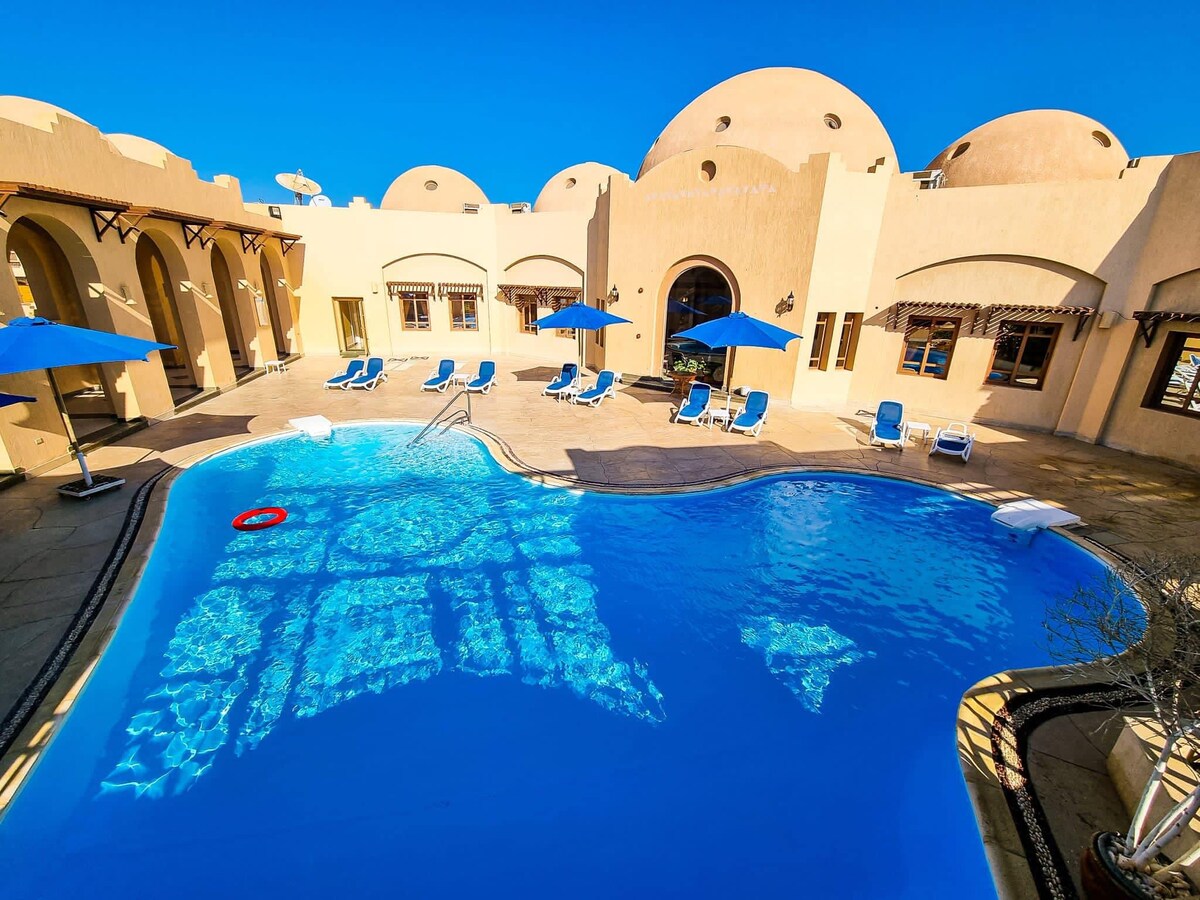 Linda moradia com vista para o mar com vistas deslumbrantes para o lindo Mar Vermelho. A poucos metros de uma praia privada de areia cristalina com corais incríveis e vida marinha. Disponibilizamos espreguiçadeiras e guarda-sóis. Localizado num complexo seguro (Swisstouch Resort, Costa Oriental). O complexo está bem conservado com um clube, restaurante, piscina, campos desportivos, mini supermercado, farmácia e lojas de presentes. Ótimo para os amantes da paz e tranquilidade e entusiastas de mergulho com snorkel / mergulho.