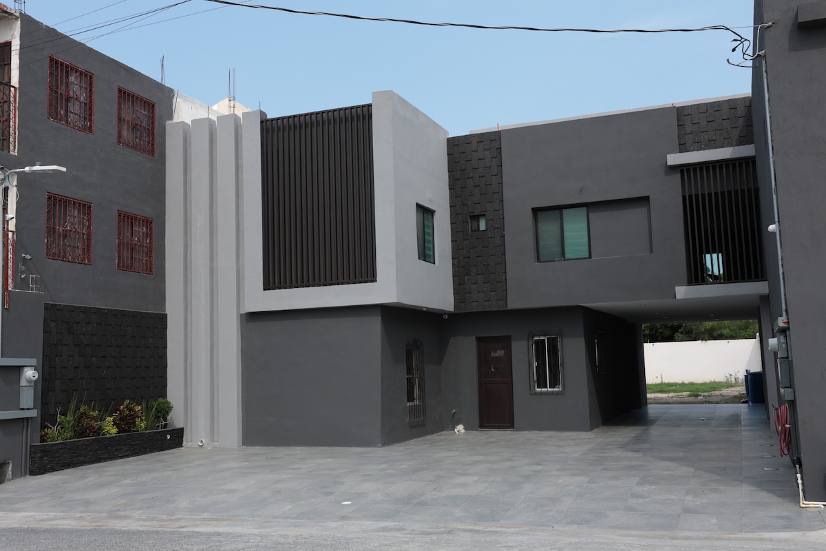 Desfrute das suas compras em Brownsville. Realizar procedimentos no Consulado Americano ou Cas. Estamos a apenas 2 quarteirões da Ponte Internacional Gateway. Temos um apartamento muito confortável e belos acabamentos de 2 quartos e 2 casas de banho completas para até 5 pessoas. Quarto principal com cama king-size e casa de banho completa. 2º. Quarto com 2 camas individuais e sofá-cama. Sala de jantar e cozinha bem equipadas. Frigorífico 3 portas e fogão elétrico. Smart tv, varanda com grelha. Ginásio.