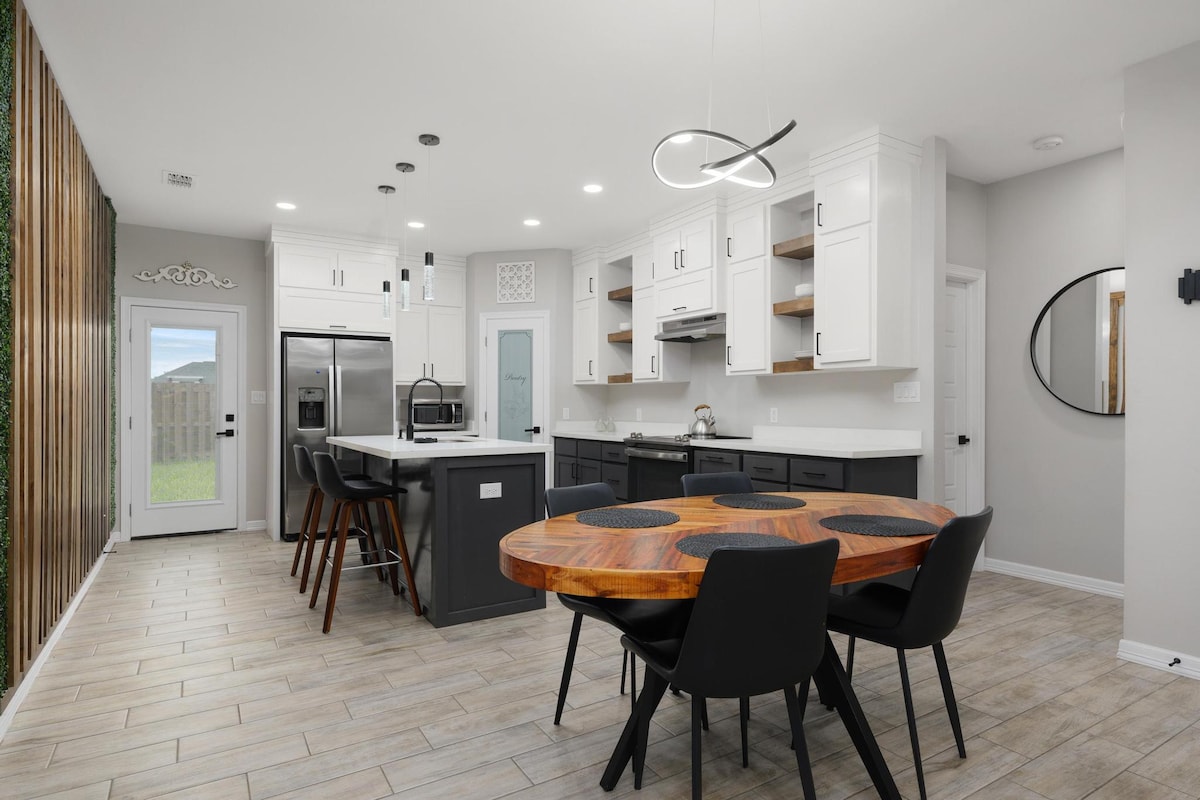 Uma quinta moderna totalmente renovada com uma piscina XL (com escorrega) sentada numa resaca de tirar o fôlego. Desfrute de duas áreas de estar, três quartos deslumbrantes e um escritório. Muito espaço para refeições com recanto para o pequeno-almoço, sala de jantar formal e bar. Localizado a poucos quarteirões do centro comercial Sunrise, centros comerciais e a uma curta viagem de carro até South Padre Island /spaceX . Esta luxuosa casa elegantemente concebida está equipada para famílias de todos os tipos e inclui jogos e opções de home theater para entretenimento. *PS4