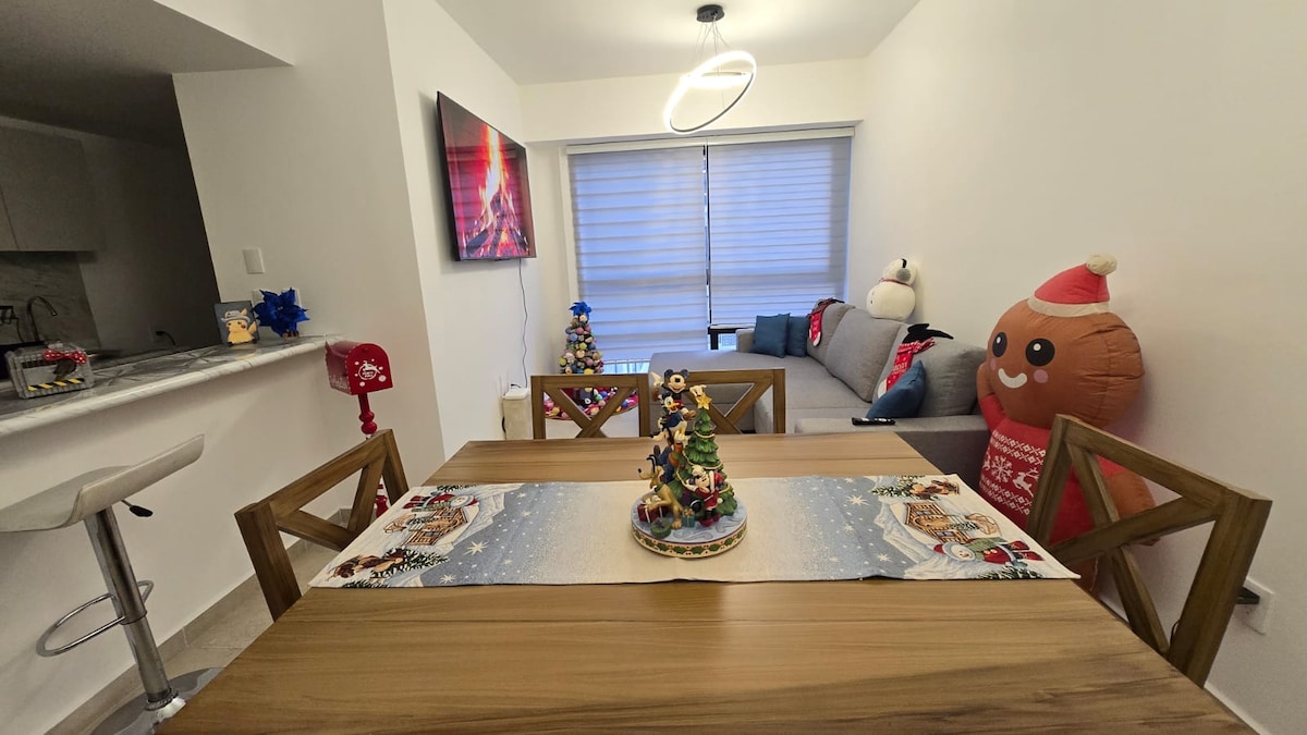 Apartamento novo com estacionamento e tudo o que você precisa para uma estadia muito agradável que vai fazer você querer voltar. A localização é imbatível, pois fica a poucos passos do shopping Mundo E e Chedraui para que você possa desfrutar de restaurantes, cinemas, pista de gelo e todas as comodidades a 3 minutos a pé do apartamento, Wi-Fi de alta velocidade, tela "55" Netflix, academia, ludoteca e sala de jogos. O Oxxo mais próximo a 5 metros. A Plaza Satélite fica a 1,5 km.